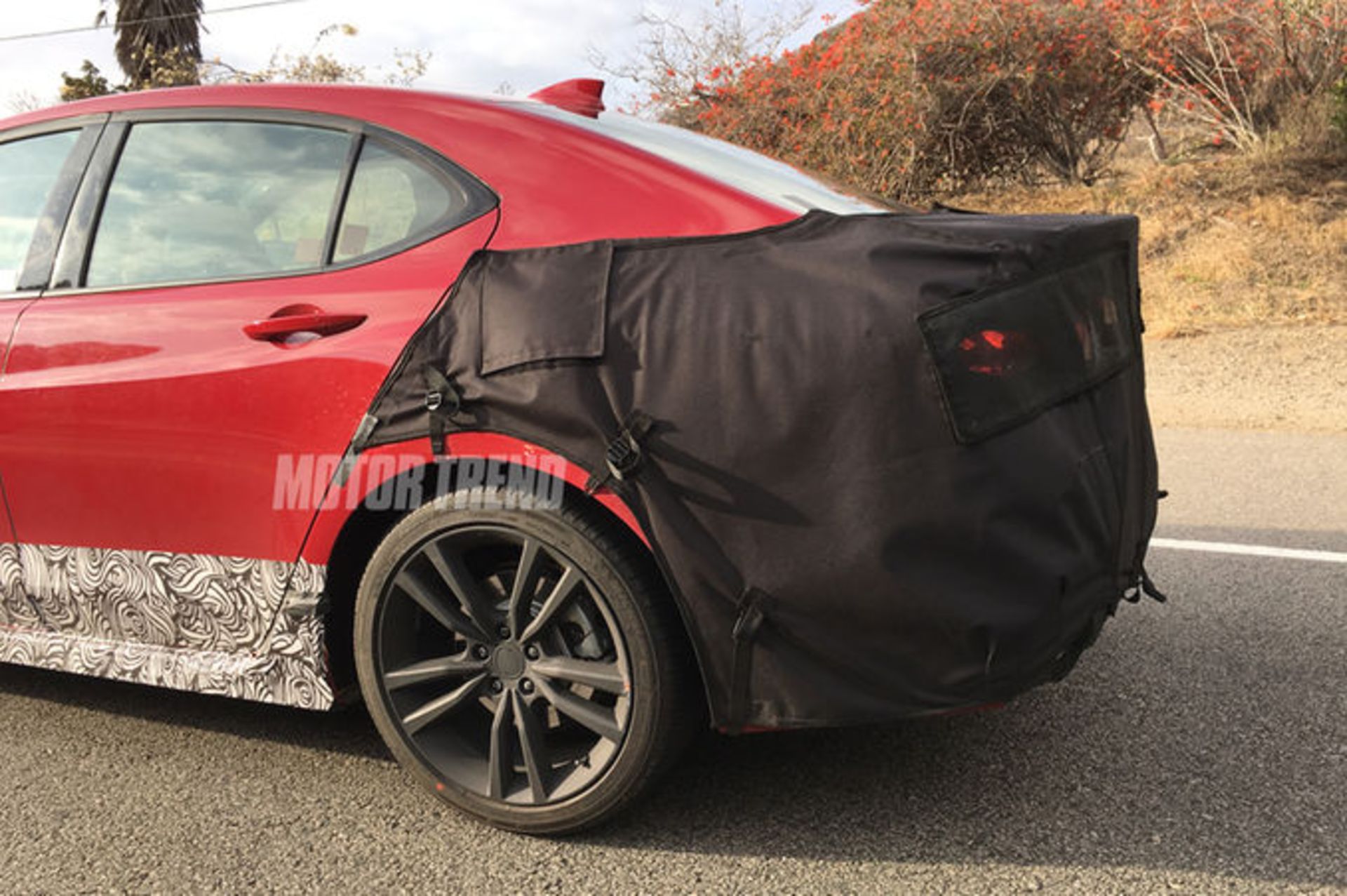 ما نخستین بار این طراحی جلوپنجره را در کانسپت آکورا Precision دیدیم، و بعدها روی نسخه بهروزرسانی شده آکورا MDX مدل ۲۰۱۷ که از اوایل امسال وارد بازار شد آن را مشاهده کردیم. در این نمونه اولیه، که ما اعتقاد داریم آکورا TLX مدل ۲۰۱۸ میباشد، جلوپنجره ظاهری اسپرت تر به طراحی قسمت جلو خودرو داده است که خیلیها انتظار داشتند چنین چیزی را روی یک سدان تولیدی آکورا ببینند. چراغهای جلو شکل باریک و زاویهدار خود را همانند گذشته حفظ کردهاند، ولی این نمونه اولیهتریم نقرهای پنجرهها که معمولاً در مدلهای TLX دیده بودیم را ندارد. اگر کمی با دقت به طراحی قسمت عقب خودرو نگاه کنید مشاهده خواهید کرد که آکورا شکل آن را کمی تغییر داده است.