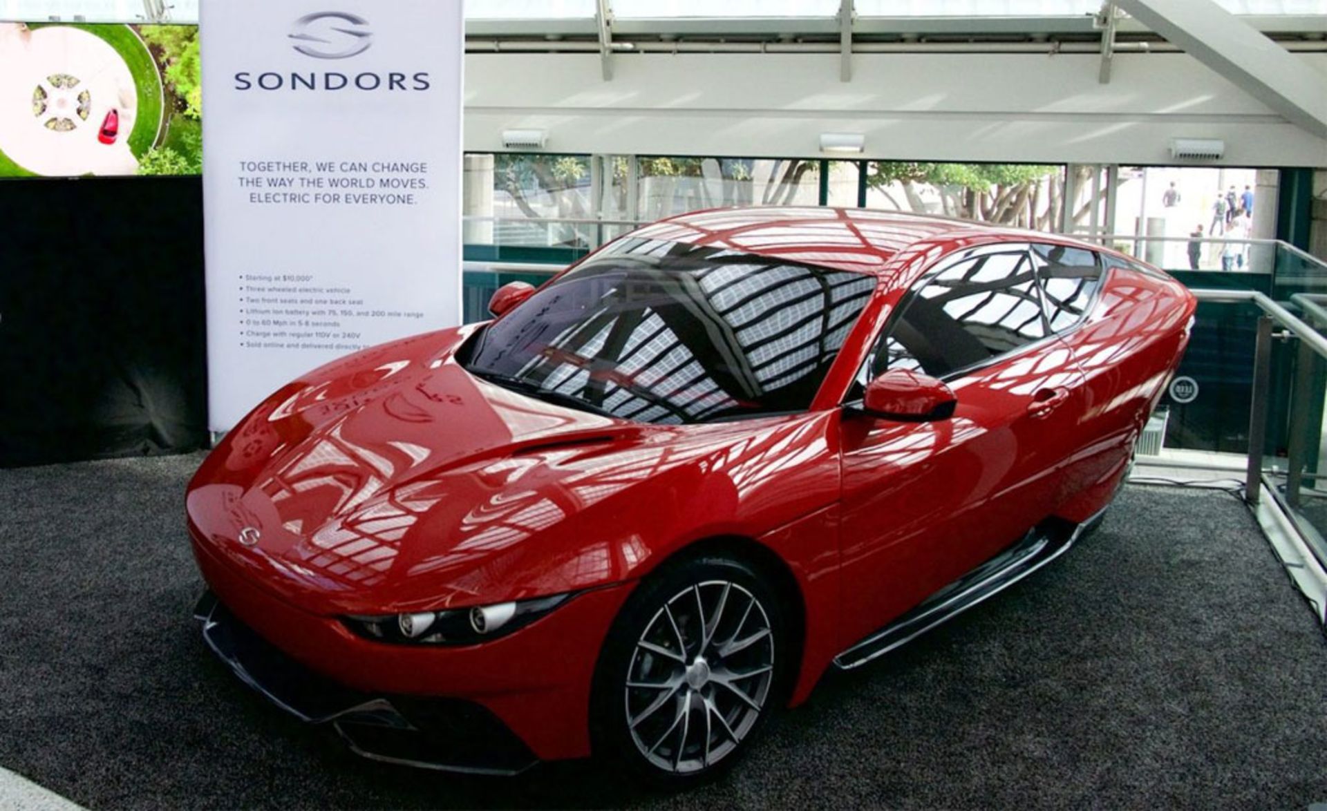 یک شرکت تازه تأسیس بنام Crowdfunded در نمایشگاه خودروی لسآنجلس خودروی الکتریکی سهچرخی بنام Sondors را معرفی کرده است. این یک پروتوتایپ از خودرویی تمام الکتریکی است که پروژهٔ ساخت آن از ماه ژانویهٔ امسال آغاز شده بود. این خودرو دارای سه صندلی است که دوتا در جلو و سومی در عقب نصب شده است و وعده داده که به مقرونبهصرفهترین، جذابترین و کاربردیترین خودروی الکتریکی بازار تبدیل گردد. قیمت این خودروی سهچرخ فعلاً 10 هزار دلار اعلام شده است.
