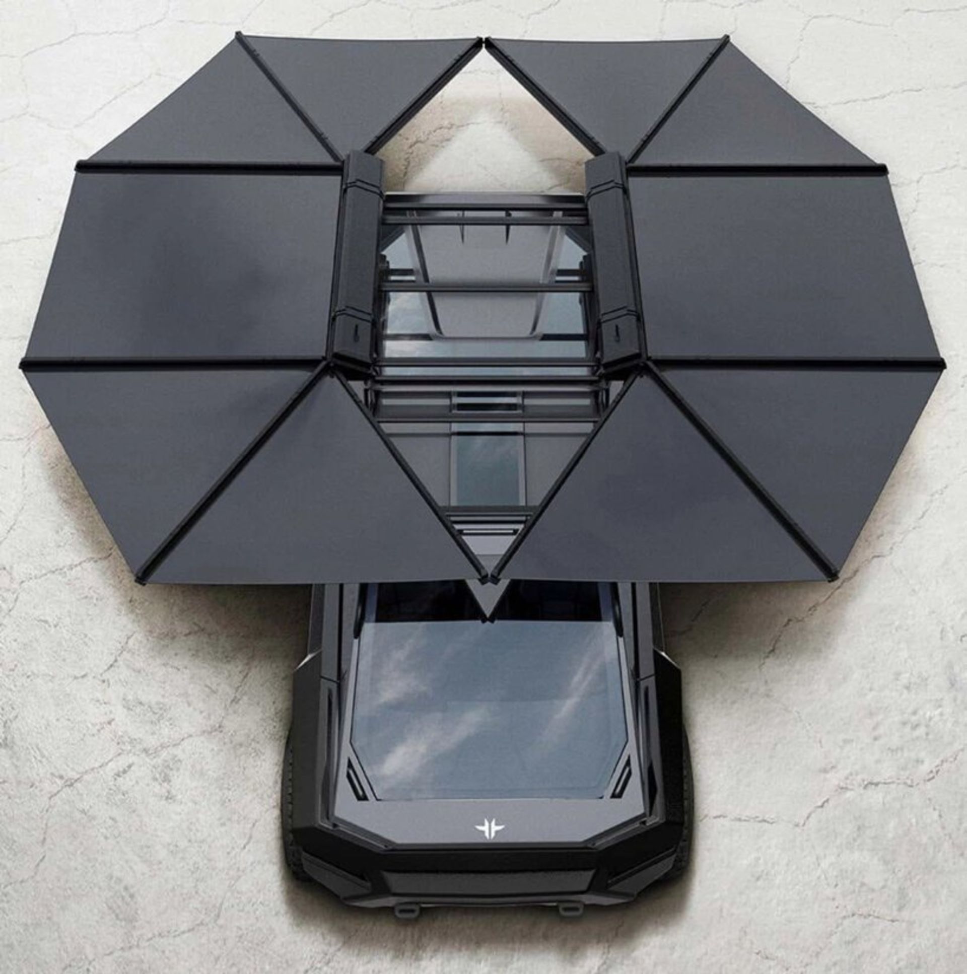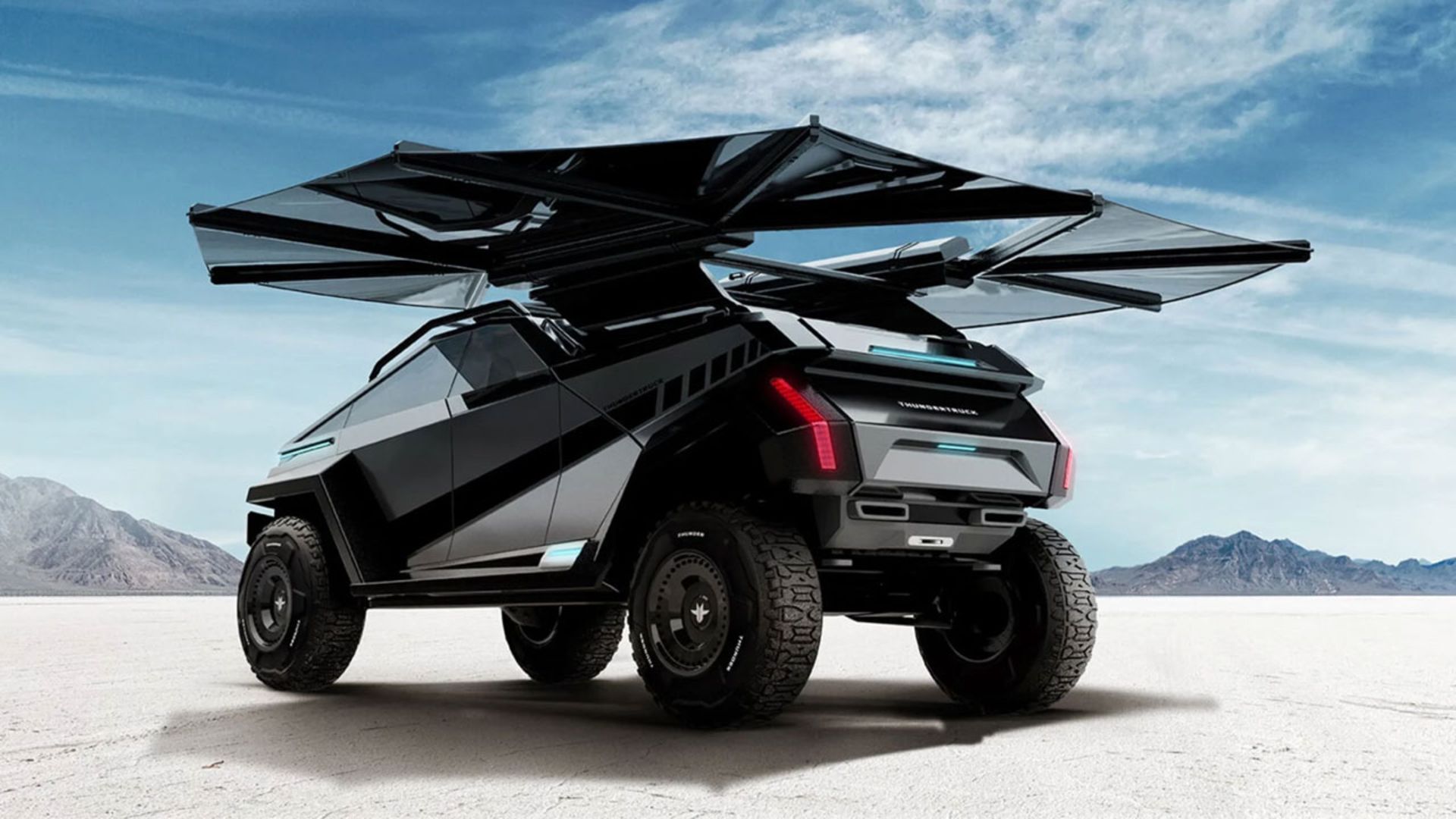 از دیگر ویژگی‌های منحصربه‌فرد این وانت الکتریکی می‌توان به سایبان خورشیدی بزرگی اشاره کرد که به شارژ خودرو کمک می‌کند. تاندرتراک همچنین به لطف این سایبان باعث آرامش و آسایش بیشتر سرنشینان در زمان گردش در طبیعت خواهد شد. وانت موردبحث یک مثال عالی از آینده احتمالی وانت‌های الکتریکی می‌باشد هرچند با خط تولید سال‌های زیادی فاصله دارد.