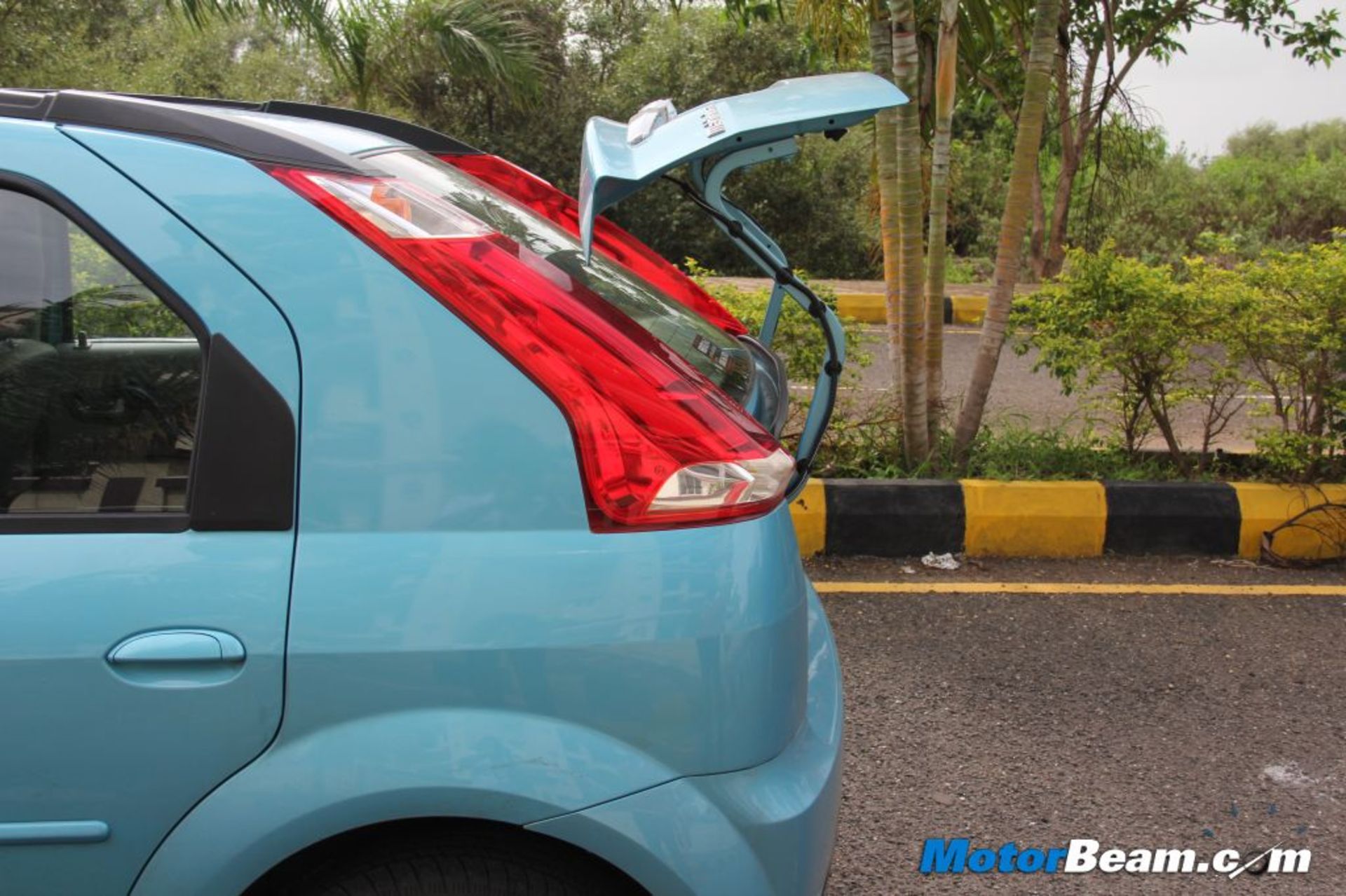 در ابتدای مطلب گفتیم که ماهیندرا این خودرو را یک سدان کامپکت میداند و حال دلیل این امر را ذکر مکنیم. در حقیقت ماهیندرا وریتو وایب یک هاچبک واقعی نیست چراکه در کمال تعجب، درِ صندوق بار آن برخلاف همهٔ هاچبکها با شیشهٔ عقب باز نشده و همانند خودروهای سدان باز میشود! این یعنی طراحان و مهندسان ماهیندرا زحمت طراحی درِ صندوق کامل و همراه با شیشهٔ عقب را به خود نداده و صرفاً اقدام به حذف و بریدن صندوق بار کردهاند! بنابراین وریتو وایب یک شِبْه هاچبک است و به نظر می رسد هدف ماهیندرا از ساخت آن فقط و فقط رساندن طول لوگان به زیر 4 متر بوده است. این امر موجب شده که دهانهٔ صندوق بار بسیار کوچک شود تا برای قرار دادن اشیاء و بارها در صندوق مجبور به خم شدن باشیم. بااینحال حجم صندوق بار نسبت به یک خودروی هاچبک مناسب و وسیع است اما شیشهٔ عقبِ ثابت و تاشو نبودن صندلیهای عقب، کاربرد آنرا محدود کرده است. چرخ زاپاس نیز از داخل صندوق قابلدسترس نبوده و صرفاً از زیر خودرو امکان دسترسی به آن وجود دارد. بعلاوه برفپاککن و شیشهشوی عقب هم برای آن در نظر گرفته نشده است.