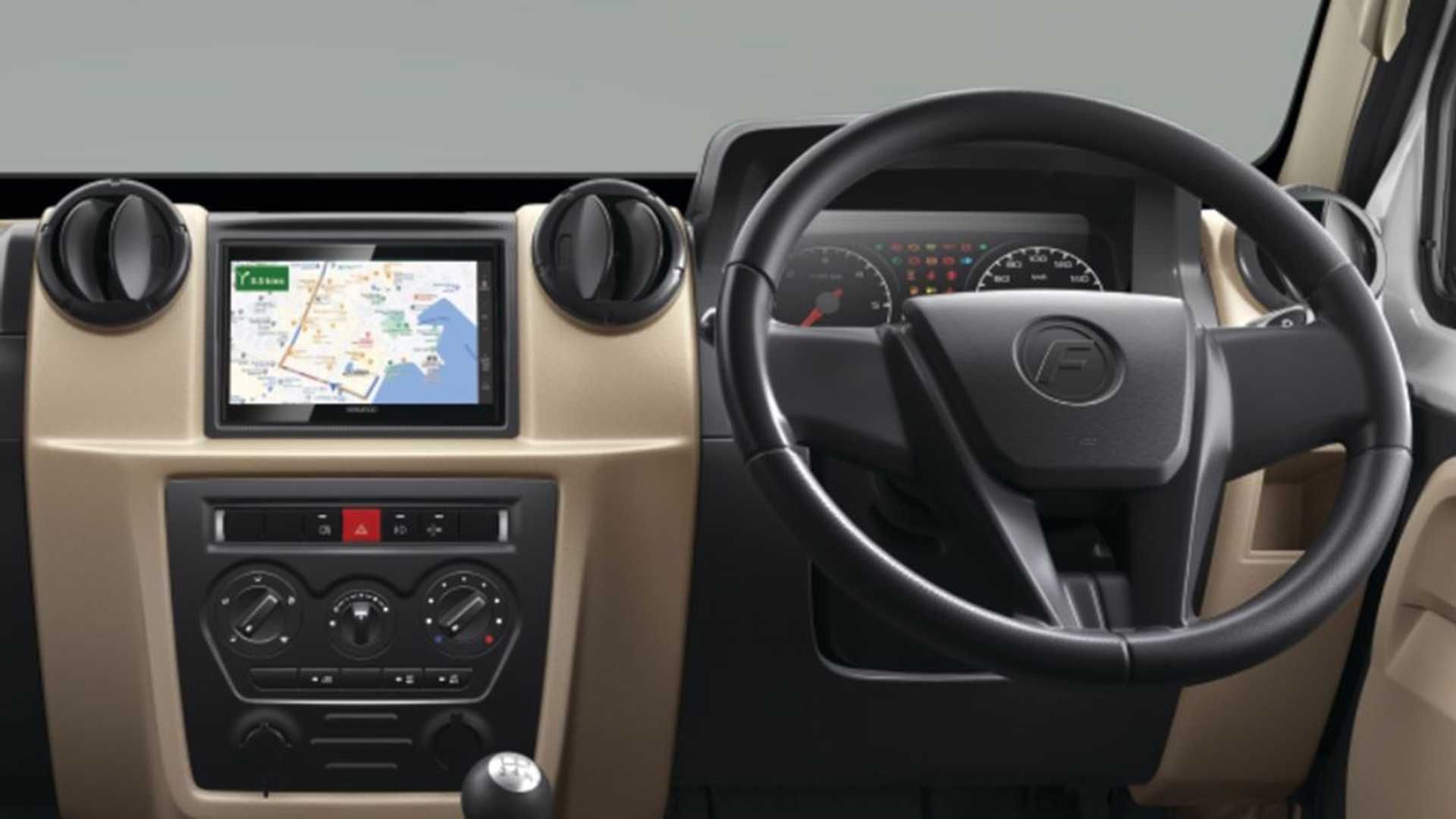 کابین این شاسیبلند هندی کاملاً ابتدایی است اما بااینحال از امکاناتی مثل نمایشگر ناوبری کوچکی در بالای کنسول میانی، پنجرههای برقی و قفل مرکزی برخوردار است. برای این خودرو سیستم تهویهٔ دوگانه هم در قالب یک آپشن ارائه میشود اما به نظر میرسد این چیزی است که همهٔ خریداران برای رانندگی با یک شاسیبلند پُر از 13 نفر در هند نیاز خواهند داشت.