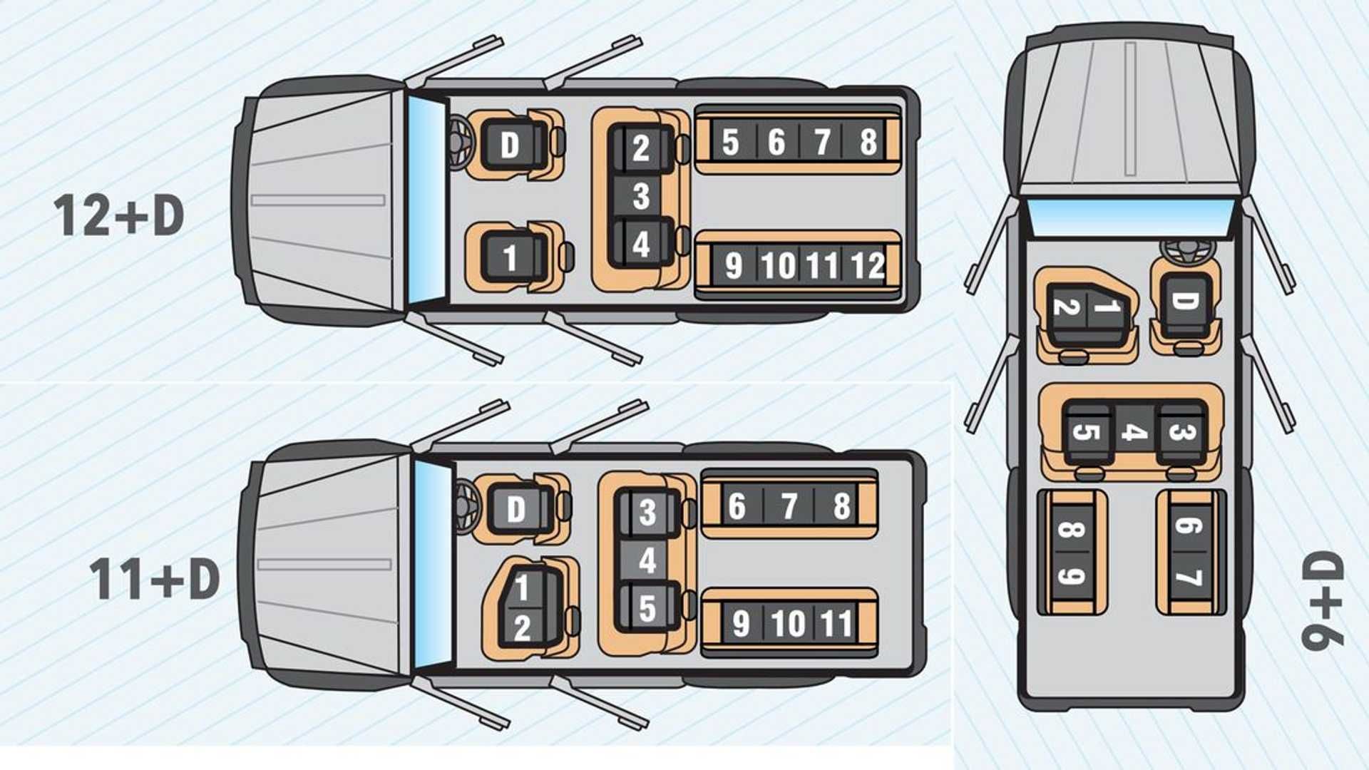 برای جای دادن این تعداد سرنشین، برای ترکس کروزر چیدمان صندلی عجیبی در نظر گرفته شده است. این خودرو در سه نسخهٔ مختلف ارائه میشود که نسخهٔ 10 نفرهٔ آن در جلو سه صندلی، در ردیف دوم سه صندلی و در عقب هم چهار صندلی بهصورت رودررو به همراه کمی فضای بار دارد. نسخهٔ 13 نفره اما به دو صندلی در جلو، سه صندلی در وسط و هشت صندلی در عقب مجهز بوده و هیچگونه فضای باری ندارد. برای ترکس کروزر درب پشتی بزرگ و یک زیر پایی در نظر گرفته شده تا دسترسی به صندلیهای نیمکتی عقب را آسانتر کند. همچنین این صندلیهای نیمکتی به سمت بالا هم جمع میشوند تا درصورتیکه کسی روی آنها نمینشیند، فضای بار بیشتری فراهم گردد.