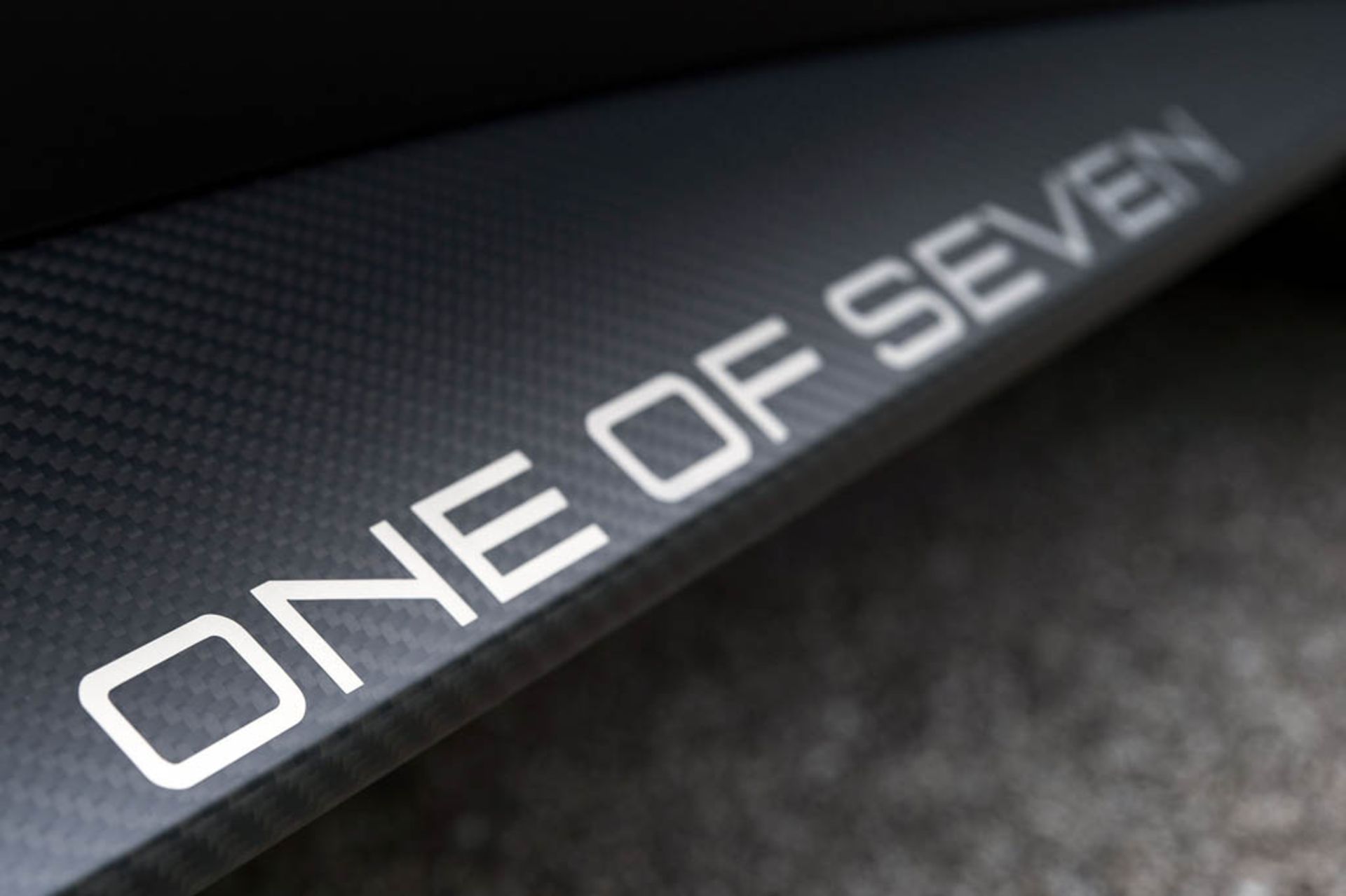بدنه که بسیار سبک‌وزن و مقاوم است در هر 7 خودرو با پوشش سیاه جت‌های شکاری رنگ‌آمیزی می‌شود. در کنار این رنگ سیاه، شاهد حضور یک کمربند فیبرکربن از میان کاپوت و پایین درها هستیم که زیبایی فراوانی به خودرو می‌بخشد. همچنین در جای‌جای بدنه از لوگوهای آستون مارتین و عدد مخصوص خودرو استفاده می‌شود تا خاص بودن خودروی زیبای آستون مارتین صدچندان شود. زیبایی تحسین برانگیز عبارت "یک از هفت" که با پوششی روشن بر روی بدنه براق و مشکی خودرو کار شده در نخستین دستگاه از این هفت دستگاه، چشم هر عابری را به‌شدت می‌گیرد.