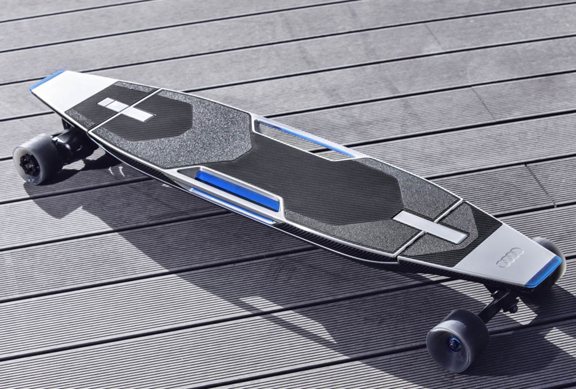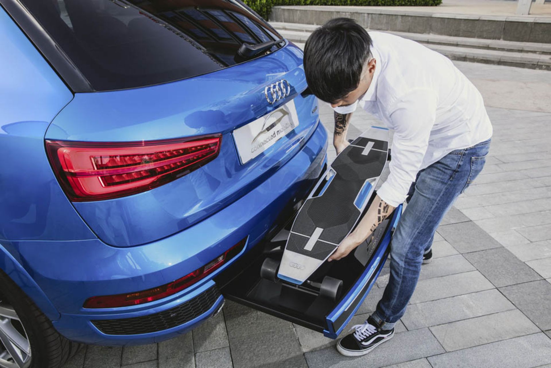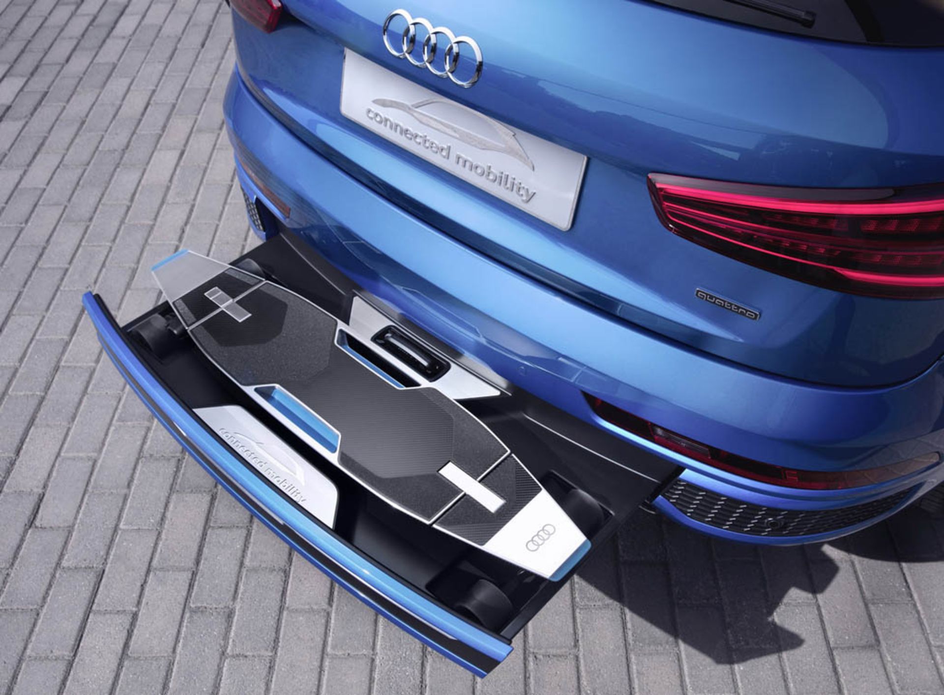 هیچکس ماندن در ترافیک را دوست ندارد. به همین دلیل آئودی تصمیم به ایجاد تغییر در مدل Q3 خود گرفته و در سپرِ عقبِ آن، جایی برای قرارگیری یک لانگبورد برقی تعبیه کرده است. این وسیله که از فیبرکربن و آلومینیوم ساختهشده است، هنگامیکه در داخل سپر قرار دارد بهطور خودکار شارژ میشود؛ اما آئودی برای استفادهٔ بهتر از این لانگبورد پیشنهاد اتصال تلفنهای همراه هوشمند به سیستم اطلاعاتی-سرگرمی Q3 را میدهد. چراکه در این صورت، سیستم اطلاعاتی-سرگرمی آئودی سریعترین مسیر ممکن با کمترین ترافیک را برای رسیدن به مقصد محاسبه کرده و درصورتیکه تشخیص دهد شما با لانگبورد سریعتر از Q3 به مقصد میرسید توصیه میکند که خودرو را پارک کرده و ادامهٔ مسیر را با استفاده از لانگ بورد طی کنید. این در حالی است که لانگبورد الکتریکی با یکبار شارژ توانایی پیمودن بیش از 12 کیلومتر مسافت با سرعتی بیش از 30 کیلومتر در ساعت را دارد که برای سفرهای درونشهری کافی به نظر میرسد.