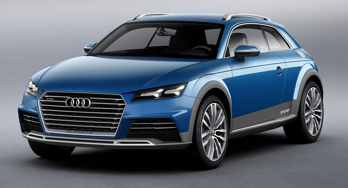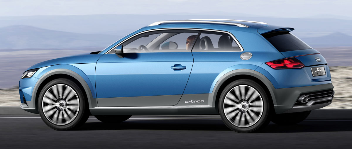 آئودی TT با جلوپنجره ذوزنقهای و چراغهای نسل جدید، ترکیبی از کوپه، SUV و واگن را به ما نشان میدهد. چهره یک TT اسپرت روی چرخهای یک شاسی بلند آفرود.