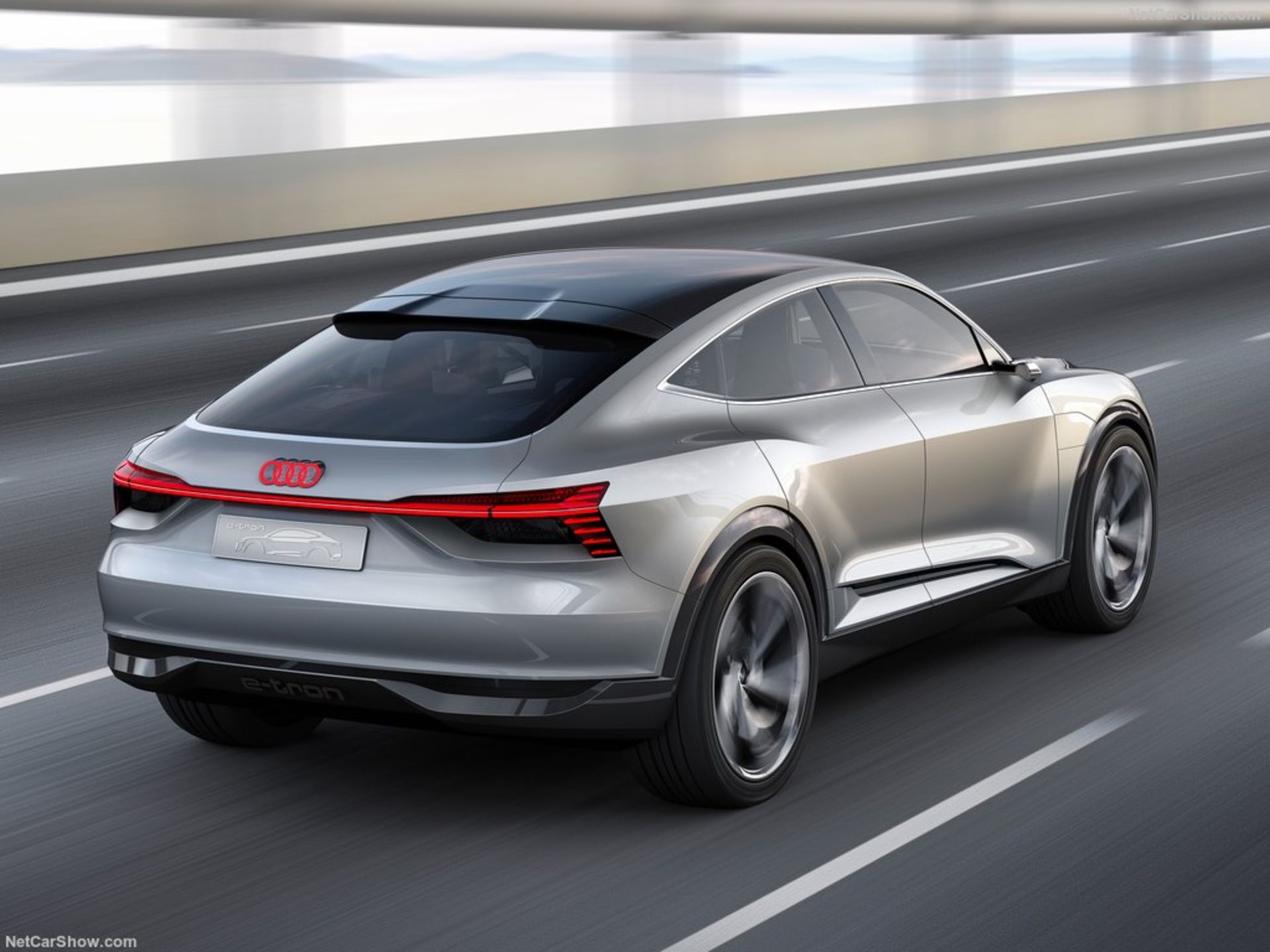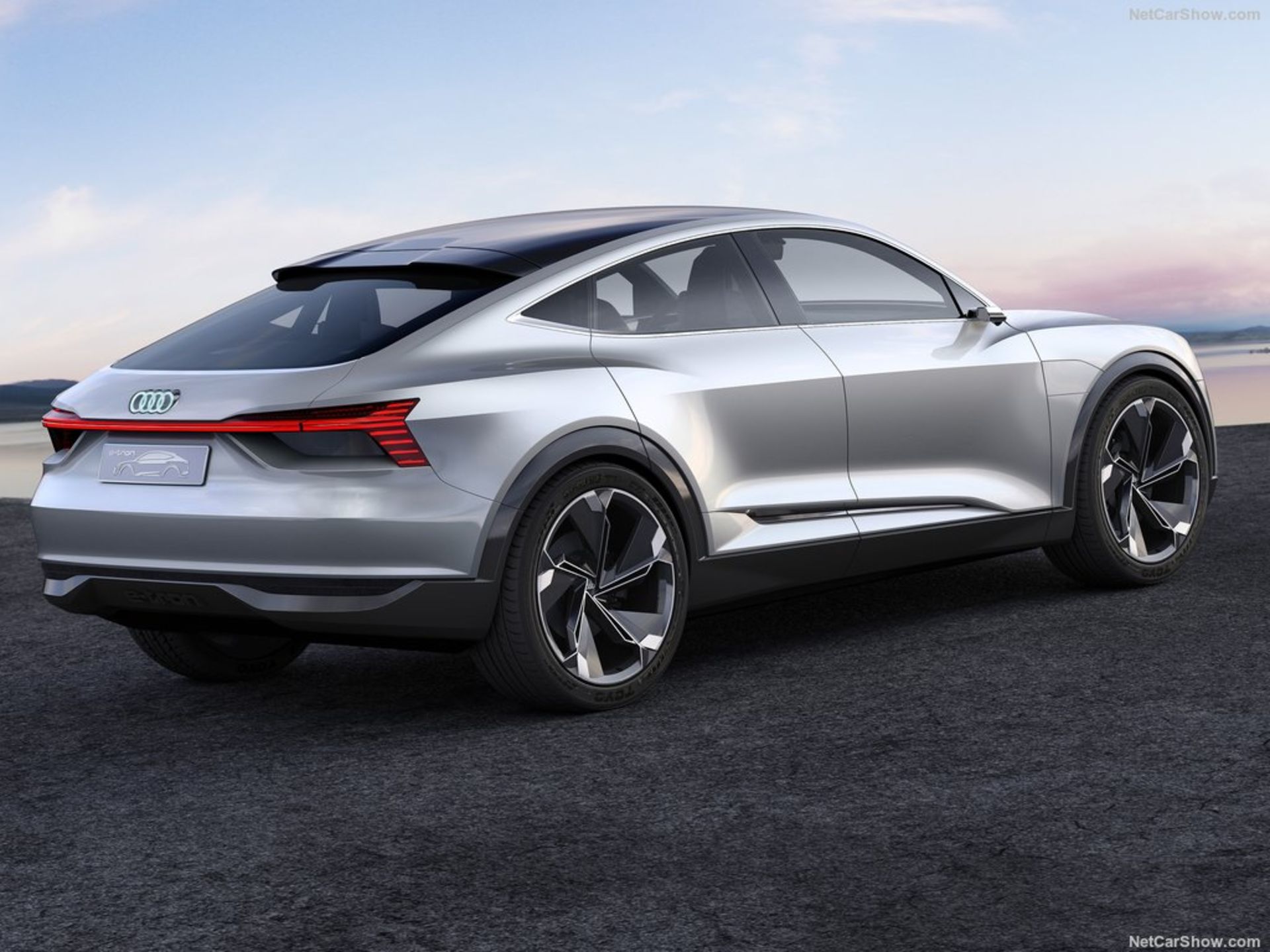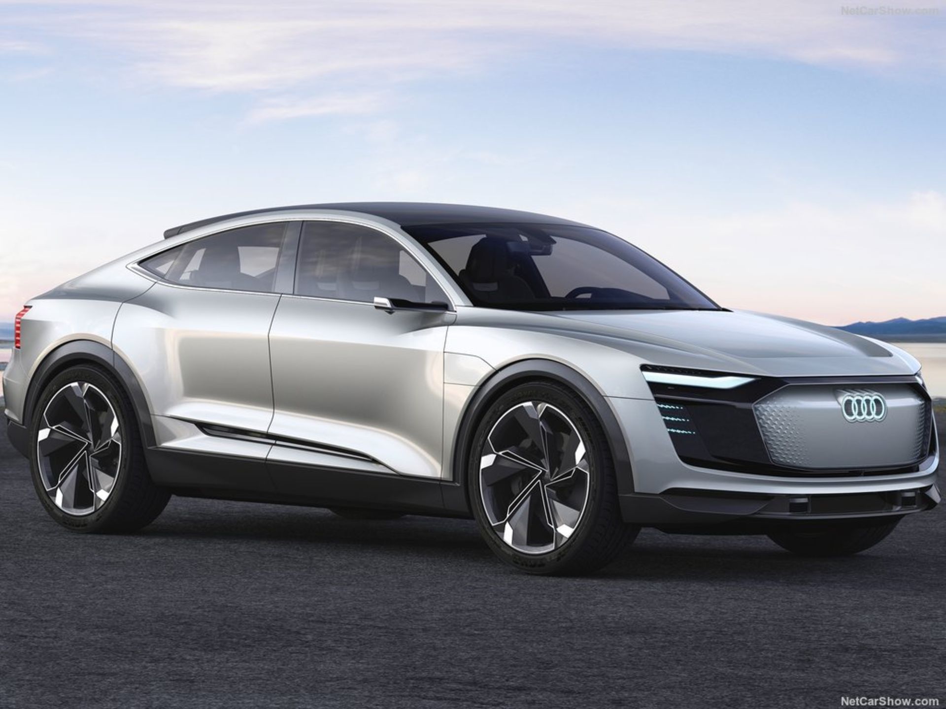 در نمای جلویی این ماشین چراغهای باریک و کشیدهای مجهز به تکنولوژی LED بکار رفته درحالیکه لوگوی چهار حلقه زیبای آئودی نیز در مرکز جلوپنجره میدرخشد. خطوطی عضلانی هم در قسمت پایینی درها و سپرها کشیده شده درحالیکه چراغهای عقب نیز با یک نوار باریک به هم متصل شدهاند. در پروفیل جانبی، دوربینهای کوچکی جایگزین آینههای معمولی شدهاند که به گفتۀ آئودی علاوه بر بهرهمندی از این فناوری جدید، موجب بهبود جریان هوا و درنتیجه کاهش سروصدای کابین در هنگام حرکت با سرعتهای بالا هم شده است. گلگیرهای عضلانی، عدم وجود دستگیرۀ درها و رینگهای عظیم ۲۳ اینچی با طراحی شش پره هم تکمیلکننده نمای بیرونی این کانسپت الکتریکی هستند.