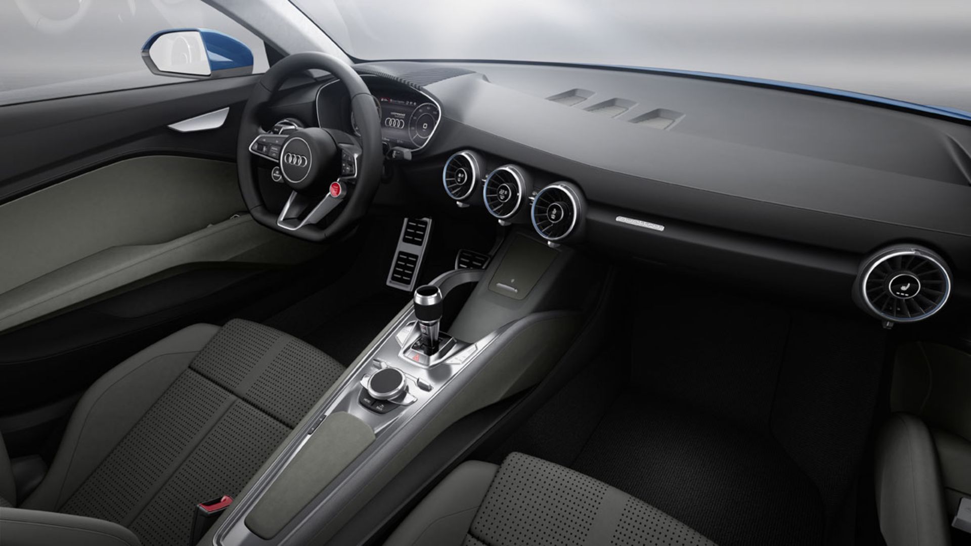فضای داخلی نیز پیش از این در نمایشگاه CES رونمایی شده بود. با وجود چهار نفره بودن، شیب سقف برای سرنشینان بلند قد عقب مشکل ساز خواهد بود. فاصله دو محور 2.5 متری و طول کلی 4.2 متری و عرض 1.85 متری این ماشین، نشان از رشد ابعاد آن نسبت به نسل دوم TT دارد.