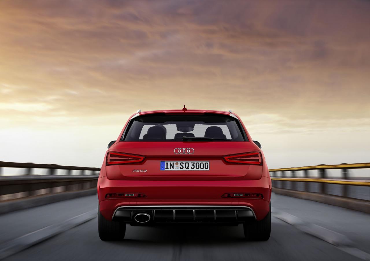 این خودرو نخستین محصول از خانواده Q آئودی است که به لوگوی RS مزین شده و نسبت به مدل های استاندارد Q3 در سپرها، رکاب های جانبی، ورودی هوای جلوپنجره، اسپویلر سقفی، دیفیوزر، زه های نقره ای مات بدنه و تک خروجی اگزوز بیضوی شکلش متفاوت است. دیگر تغییراتی که آئودی در این خودرو اعمال کرده نیز به کاهش ارتفاع 25 میلیمتری تعلیق، بهبود کیت ترمز با استفاده از کالیبرهای مشکی رنگ هشت پیستونه در جلو و عقب و رینگ های 19 اینچی (با امکان سفارش 20 اینچ) خلاصه می شود.