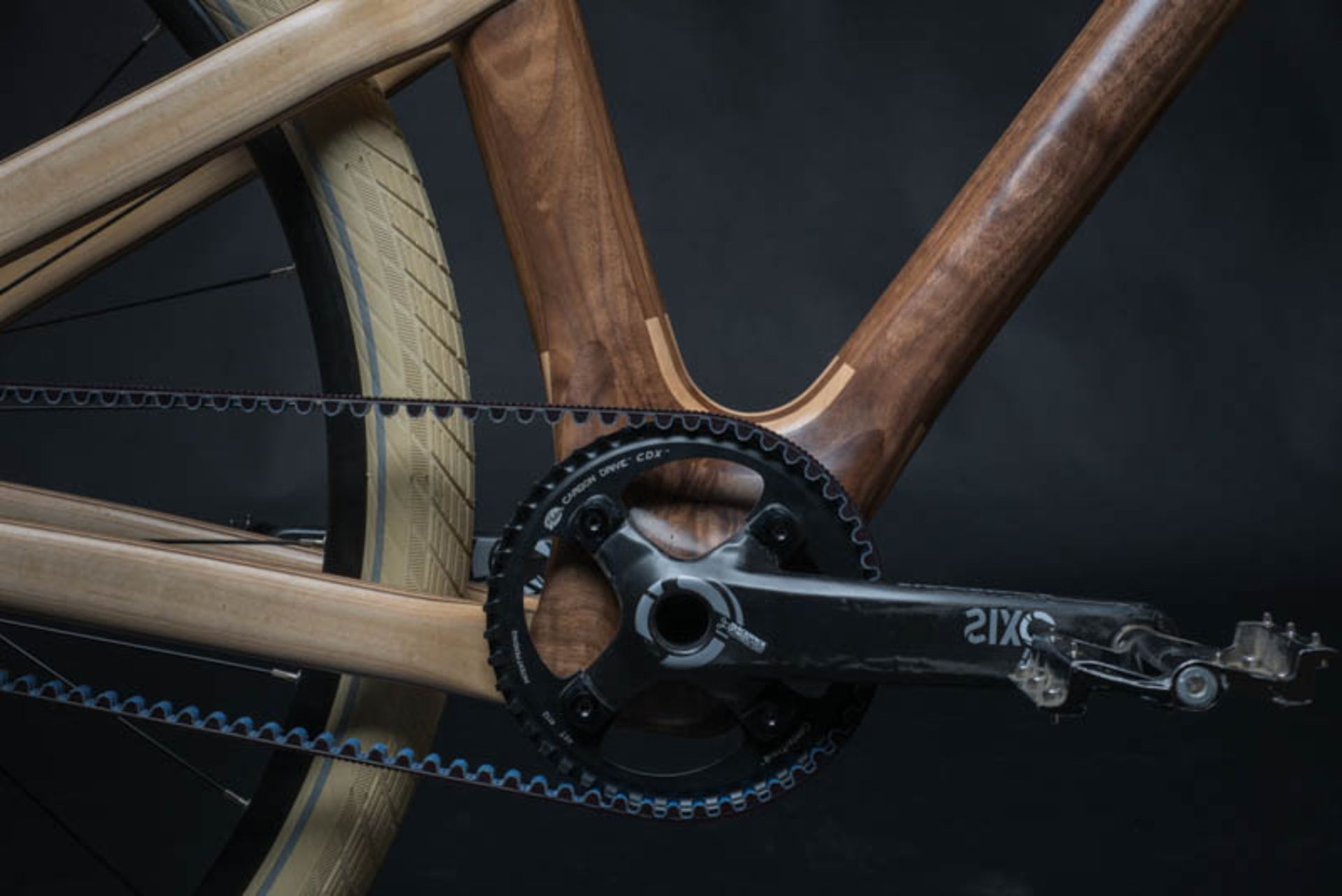 چوب ماهون آفریقایی، توس، گردو، افرا و دیگر چوبهای جنگلی با پوشش لامینت مورد استفاده قرار گرفتهاند. علاوه بر تنه، دوشاخه عقب نیز از جنس چوب مقاوم است. برای انتقال نیرو هم بجای زنجیر از تسمه استفاده شده که نرمتر و بیصداتر میباشد.