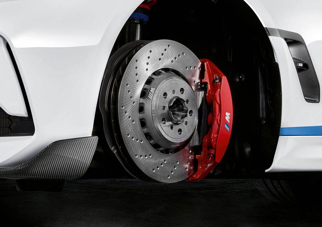 این پکیج سیستم تعلیق همچنین دربرگیرنده ترمزهای جدید با کالیپرهای قرمزرنگ 6 پیستونه در جلو و 6 پیستونه در عقب میباشد. این ترمزها با همراهی رینگهای 19 اینچی جدید باعث کاهش وزن 3.2 کیلوگرمی خودرو شدهاند؛ و این رینگهای بزرگ را لاستیکهای میشلین پایلوت اسپورت کاپ 2 در آغوش گرفتهاند.