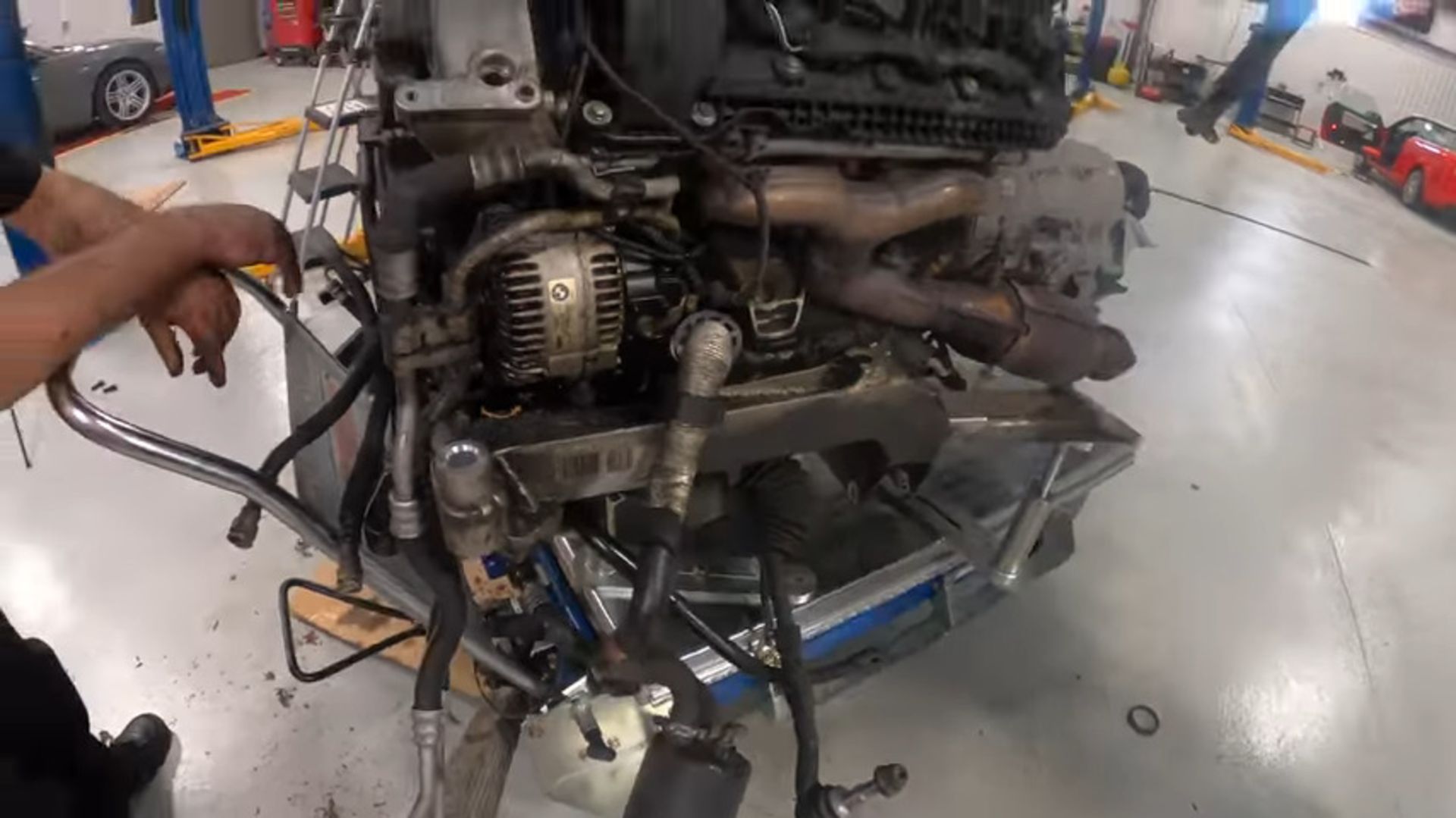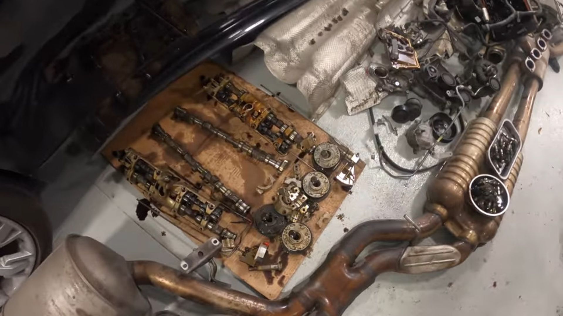 کار تعویض کاسه‌نمدهای سوپاپ در این ب‌ام‌و 8 سیلندر نیازمند باز کردن اکثر بخش‌های پیشرانه خواهد بود و حتی پیشرانه این آلپینا به خاطر وجود دیگر نشتی‌ها از زیر خودرو به‌طور کامل باز شده است.