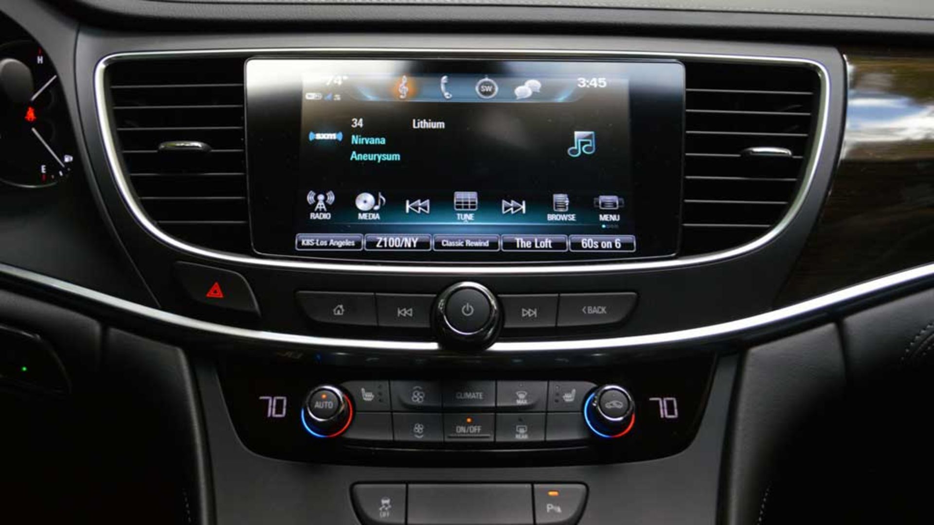بااینحال جزئیات ناخوشایندی هم در اتاق این بیوک وجود دارد همچون استفاده از پلاستیک مشکیرنگ بهویژه در اطراف شیفتر تعویض دنده که بهآسانی به ماهیت لوکس بیوک خدشه وارد کرده است. البته استفاده از چوب واقعی در داخل موجب بهبود فضا شده است. بیوک همواره توجه خاصی به صفحهنمایش سیستم اطاعاتی-سرگرمی خود دارد که این امر در لاکراس هم اعمالشده و نمایشگر لمسی آن کاملاً در برابر بجای ماندن اثرانگشت مقاوم است؛ اما شیفتر الکترونیکی تعویض دندهٔ لاکراس ازلحاظ فیزیکی کوچک بوده و برای استفاده چندان مطلوب نیست.