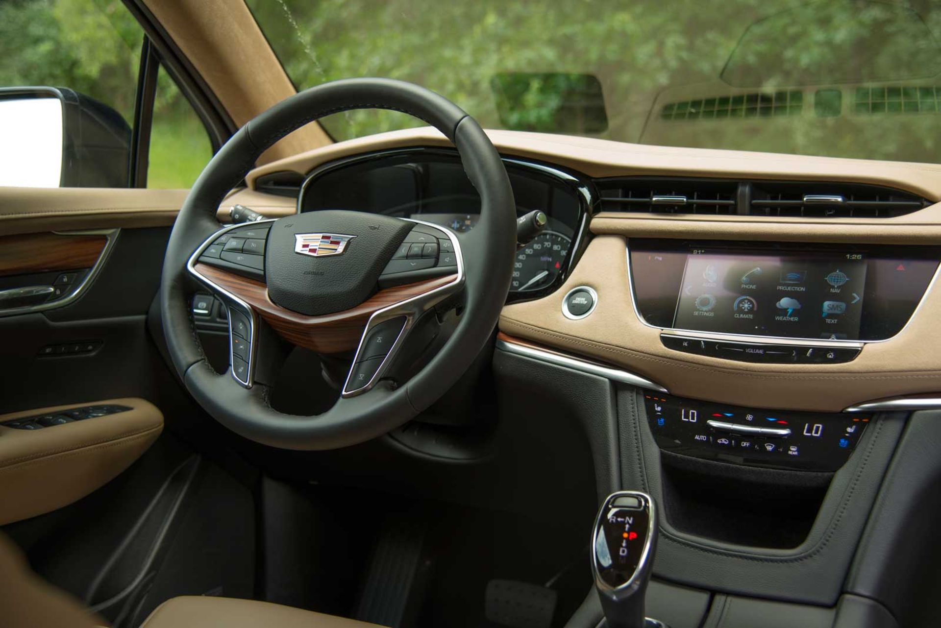کادیلاک XT5 از گیربکس 8 سرعته اتوماتیکی استفاده میکند که رفتار بسیار خوبی داشته و حداقل سروصدا را ایجاد میکند. فقط شیفتر دنده شبیه نوکیا 3310 قدیمی است.