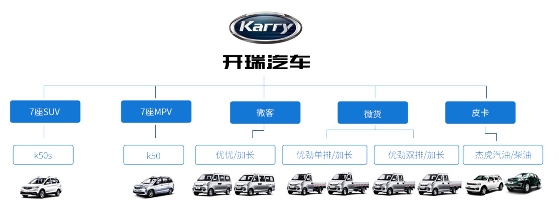 در حوالی سالهای 2008 تا 2009، به دلیل رشد روزافزون فروش خودروهای کار و تجاری در چین و جنوب شرق آسیا، چری به فکر تأسیس یک زیر برند مستقل جهت تولید خودروهای کار و تجاری افتاد. این هولدینگ تصمیم گرفت نام این برند را به پاس محبوبیت مدل کری A18، کری بگذارد.