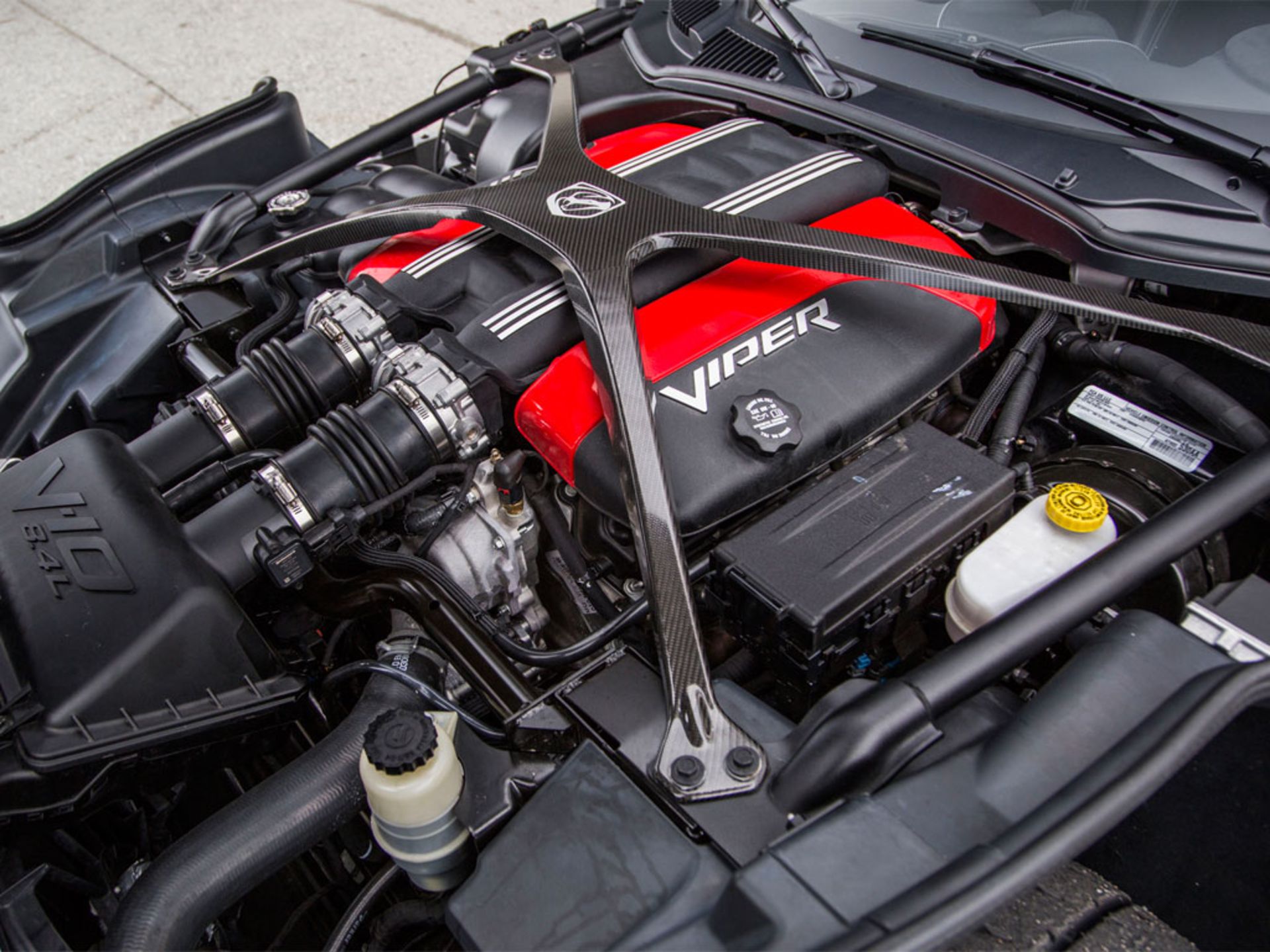 وایپر اما سابقهٔ بسیار کمتری از رقیب هموطنش دارد. گروه کرایسلر برای اولین بار سوپراسپرت کانسپتی با نام وایپر را در نمایشگاه دیترویت 1989 رونمایی کرد. سپس بعد از ساخت چند پروتوتایپ در سالهای بعد، سرانجام نسخهٔ تولیدی نسل اول وایپر در نمایشگاه لسآنجلس 1992 رونمایی شد. این سوپراسپرت به یک پیشرانهٔ 8 لیتری V10 تنفس طبیعی با 400 اسب بخار قدرت مجهز شده بود. لامبورگینی که در آن سالها تحت مالکیت کرایسلر قرار داشت، این موتور دَه سیلندر را بر اساس پیشرانهٔ V8 کرایسلر برای وایپر طراحی کرده بود. نسل اول این ماشین که صرفاً بهصورت رودستر ساخته میشد تا سال 1995 به تولید رسید و از سال 1996 نسل دوم به بازار آمد. در این نسل که تا سال 2002 روی خط تولید بود، نسخهٔ کوپه هم به وایپر اضافه شد. سپس نسل سوم بین سالهای 2003 تا 2007 و نسل چهارم بین سالهای 2008 تا 2010 به تولید رسیدند. بعد از نزدیک به سه سال وقفه نیز سرانجام نسل کنونی یا پنجم این سوپراسپرت آمریکایی در نمایشگاه نیویورک 2012 با مدل 2013 رونمایی شد. در این نسل نسخهٔ رودستر حذف شده و وایپر صرفاً بهصورت کوپه تولید شد. متأسفانه فیات-کرایسلر امسال به تولید این افعی آمریکایی بدون معرفی نسل جدید و یا حتی اعلام برنامهای برای ساخت آن پایان داد و آخرین دستگاه وایپر در آگوست 2017 از خط تولید خارج شد. نسل پنجم وایپر نیز همانند اسلافش از همان پیشرانهٔ V10 تنفس طبیعی استفاده میکند که البته حجم آن به 8.4 لیتر رسیده است؛ بنابراین وایپر در بین خودروهای تولیدی حجیمترین موتور را دارد. این موتور در ابتدا 640 اسب بخار قدرت و 815 نیوتن متر گشتاور تولید میکرد اما از سال 2014 به بعد 5 اسب بخار به قدرت آن اضافه شد. نسل پنجم این سوپراسپرت آمریکایی در انواع گوناگونی به تولید رسید که جدیدترین آنها ACR نام دارد ولی ما برای این دوئل مدل GTC را انتخاب کردهایم که در سال 2015 معرفی شد.