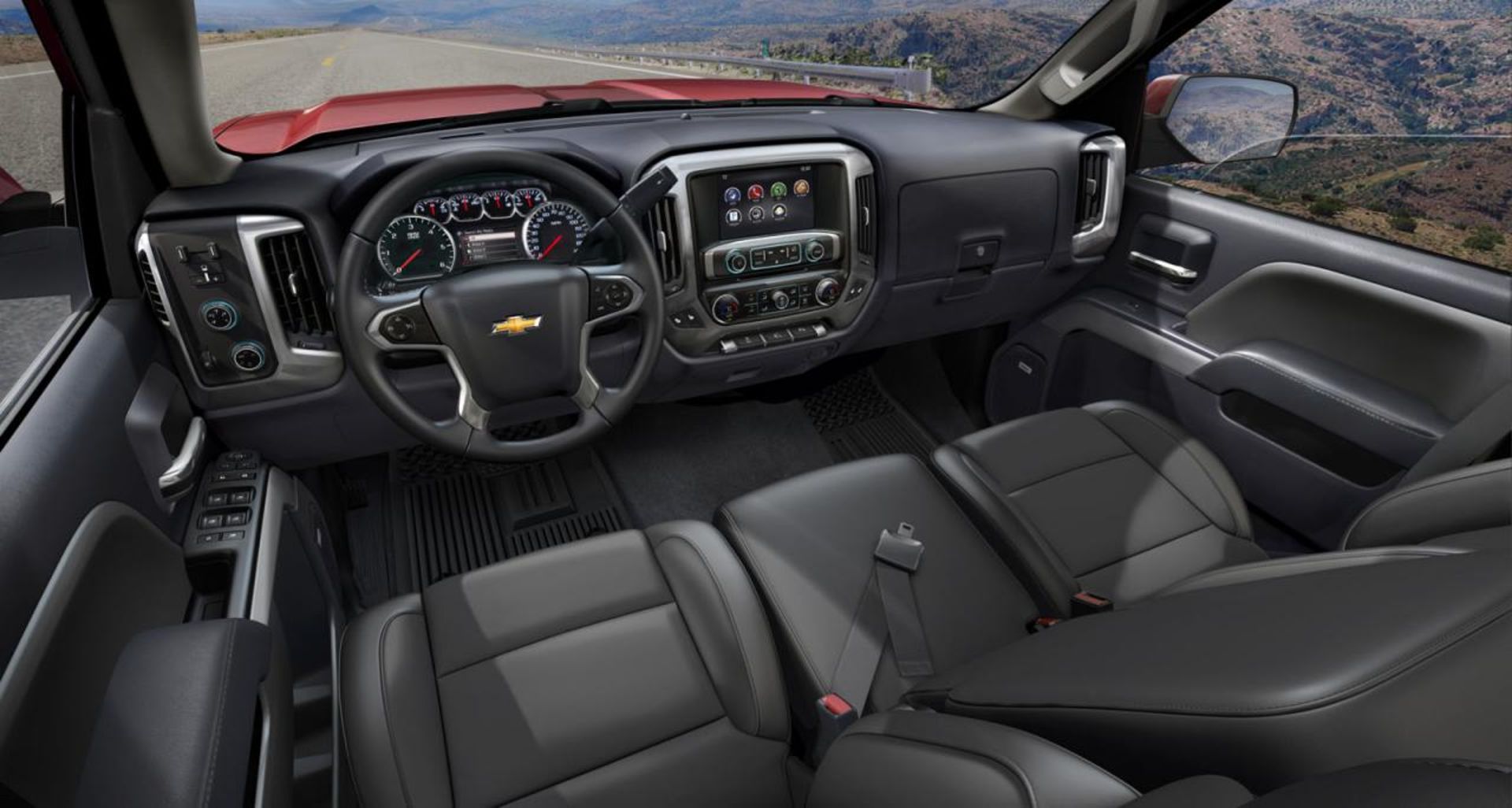 اما در نمای داخلی کابین تغییرات بسیار بیشتر شده اند؛ طراحی کاملا جدید داشبورد تقریبا عمودی خودرو به همراه فرمانی که این بار با صفحات روشن تزیین شده و همچنین محفظه نگهدارنده اشیا که میان صندلی های جلو قرار گرفته و در نهایت صفحه کیلومتر سیلورادو که بعلاوه شش نشانگر، شورولت یک نمایشگر دیجیتالی 4.2 اینچی نیز با نام Driver Information Center درون آن تعبیه کرده، فضایی کاملا جدید را برای خریداران سیلورادو فراهم کرده اند که البته در جذاب بودن آن باید اندکی محتاطانه سخن گفت. امکانات دیگری نظیر چهار خروجی برق 12 ولت، پنج پورت USB و سیستم چندرسانه ای MyLink نیز بصورت سفارشی خواهند بود.