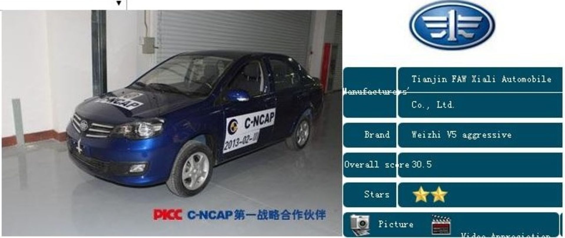 این خودرو از موسسه ارزیابی خودروهای جدید چین (CNCAP) امتیاز 2 ستاره را کسب کرده که آن را در رده ضعیف‌ترین خودروهای چینی از نظر ایمنی قرار می‌دهد. قطعاً این سطح از ایمنی برای یک خودروی مدرن و امروزی قابل‌قبول نیست، اما این بدین معنی نیست که ایمنی این خودرو از خودروهای پرفروش بازار ما یعنی خانواده پراید و خانواده پژو 405 و فرزندان و نوه‌هایش ضعیف‌تر است!