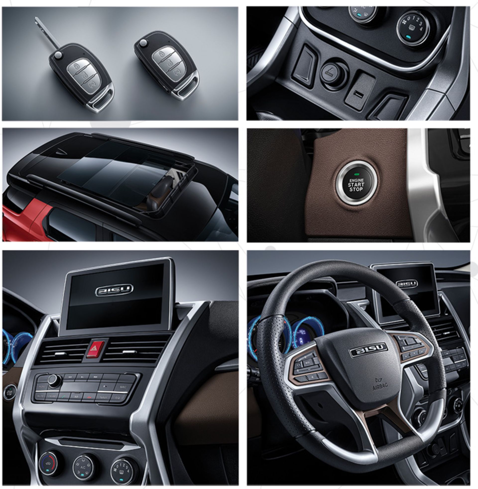 بیسو T5 هم یک کراساوور متوسط 7 نفره و سه ردیفه است که پیشرانه 4 سیلندر 1.5 لیتری توربوی آن میتواند 150 اسب بخار نیرو و 200 نیوتن متر گشتاور را در اختیار گیربکس 8 سرعته اتوماتیک برای ارسال به محور جلو قرار دهد. این مدل علاوه بر تجهیزات برادر کوچکترش، به امکاناتی چون گرمکن صندلی های جلو، درب صندوق عقب برقی، رادار با پوشش نقاط کور، سیستم هشدار خروج از لاین، دریچه تهویه برای سرنشینان ردیف سوم، ایربگ جانبی و پردهای، دوربین 360 درجه، سیستم کنترل پایداریESC/ESP، ترمز پارک برقی، سیستم کمکی حرکت در سر بالایی HSA و ... مجهز گردیده است.