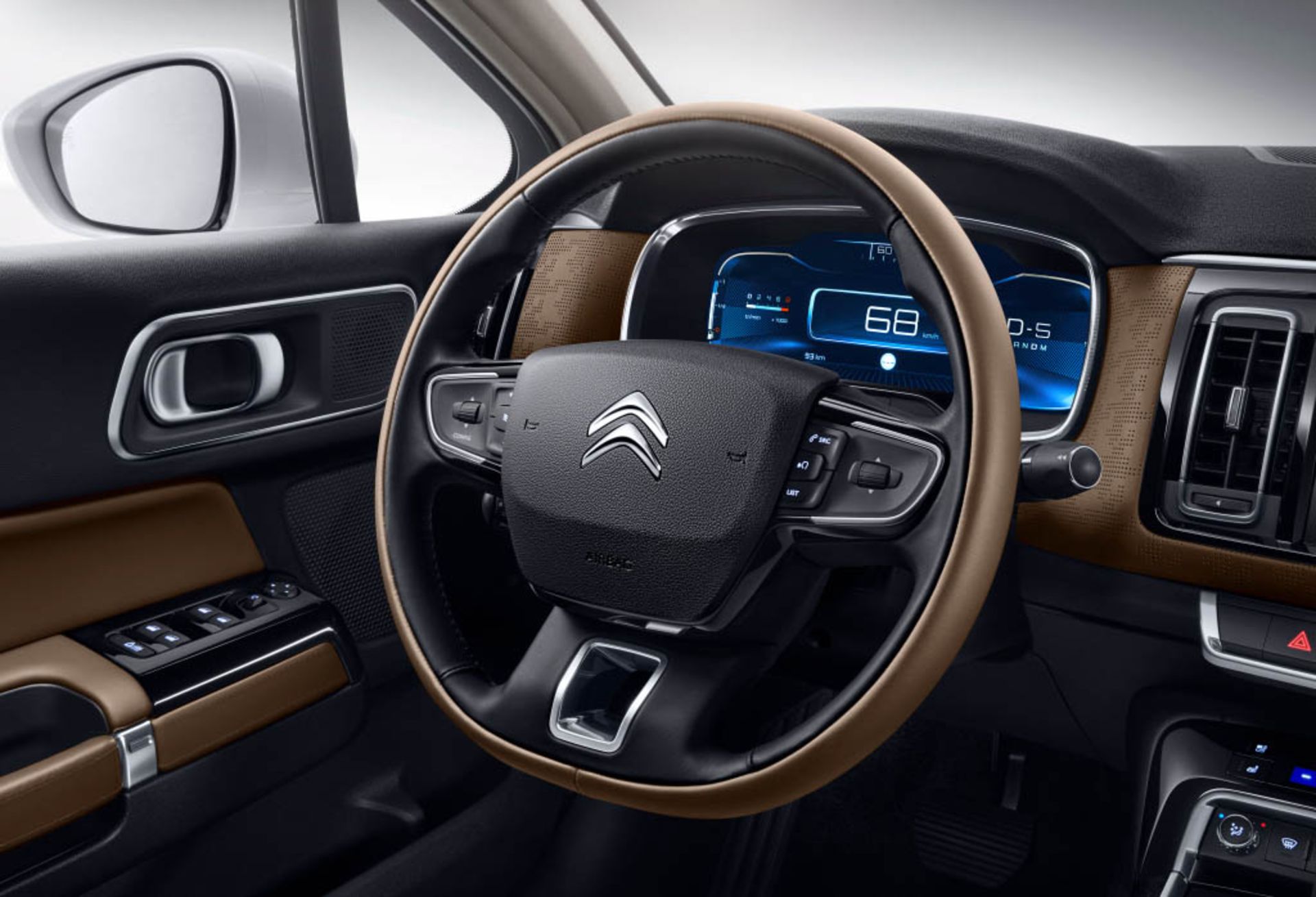 در نمای جلو، یک جلو پنجره بزرگ را می‌بینیم که در بین ساخته‌های سیتروئن از همه بزرگ‌تر است. آرم بزرگی از این برند بر روی آن جلوه گری نموده و نمای ظاهری بسیار خوبی را برای آن رقم زده است. در نمای پشت، چراغ‌هایی غول‌آسا به سبک قدیم را می‌بینیم، اما این چراغ‌ها را یک نواز ضخیم کرومی به هم وصل می‌کند که انتهای این نوار به داخل این چراغ‌ها ختم می‌گردد.