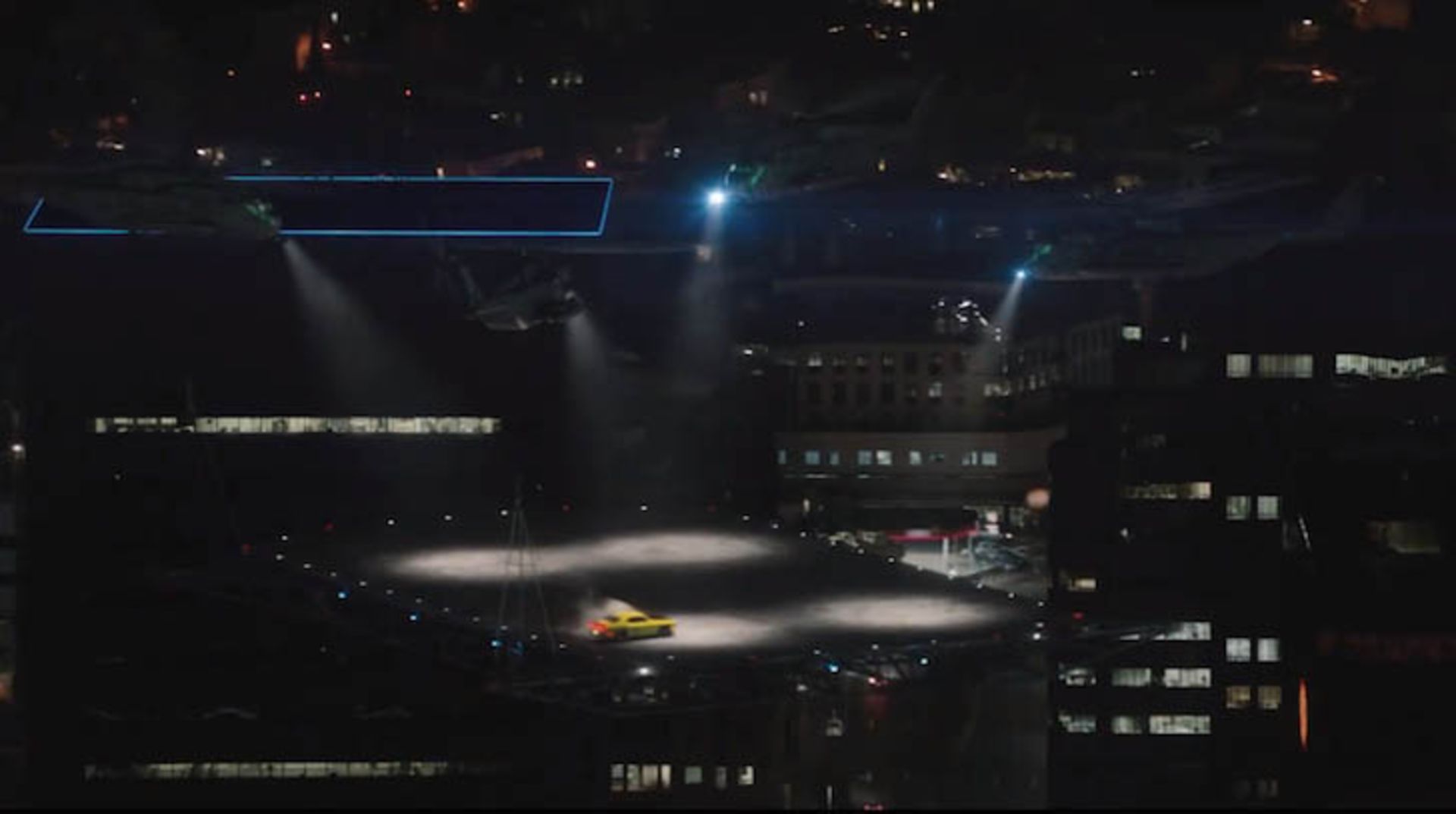 ریز میلن (Rhys Millen) این خودروی 707 اسبی را در خیابان‌های خلوت شهر می‌چرخاند و سرانجام روی عرشه ای قرار می‌گیرد که توسط چند هلیکوپتر به اندازه ده‌ها متر از روی زمین ارتفاع می‌گیرد.