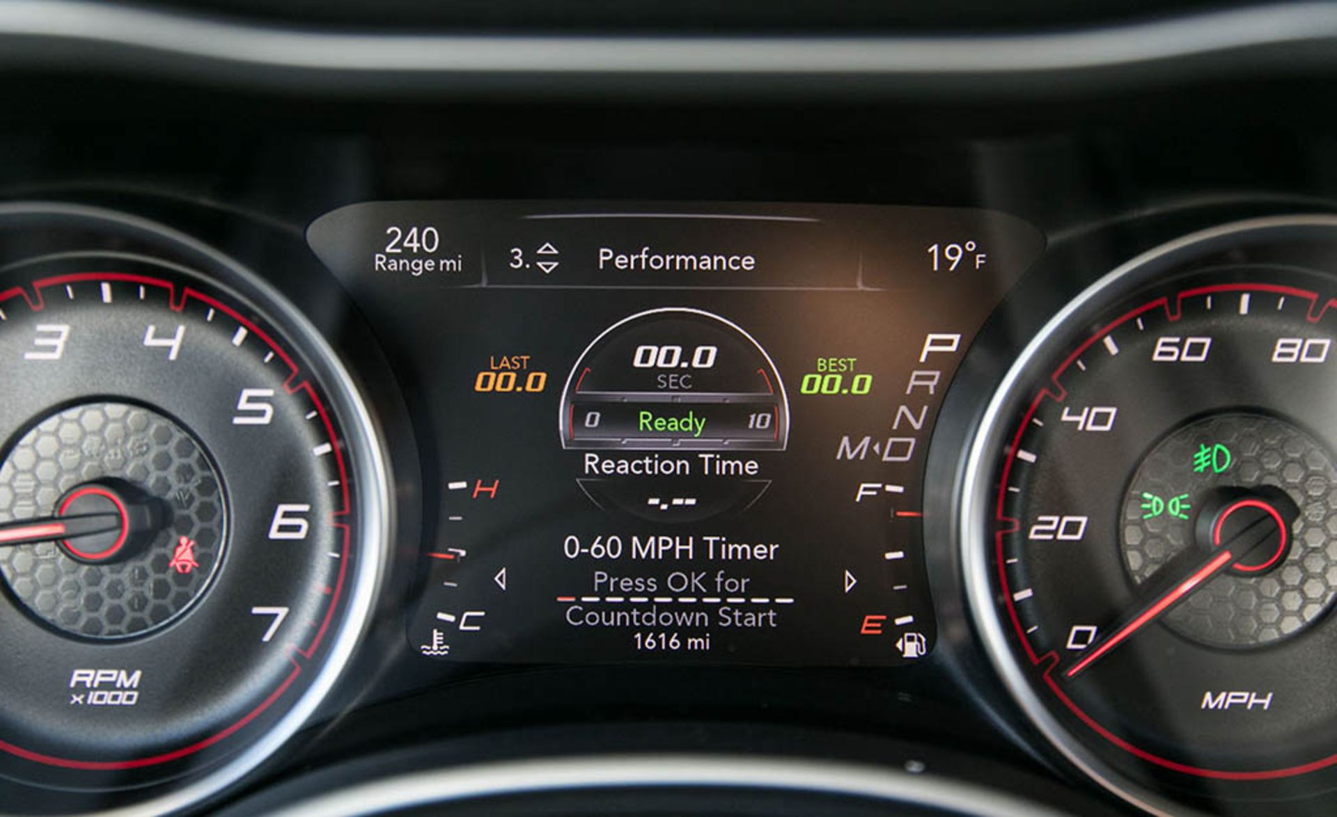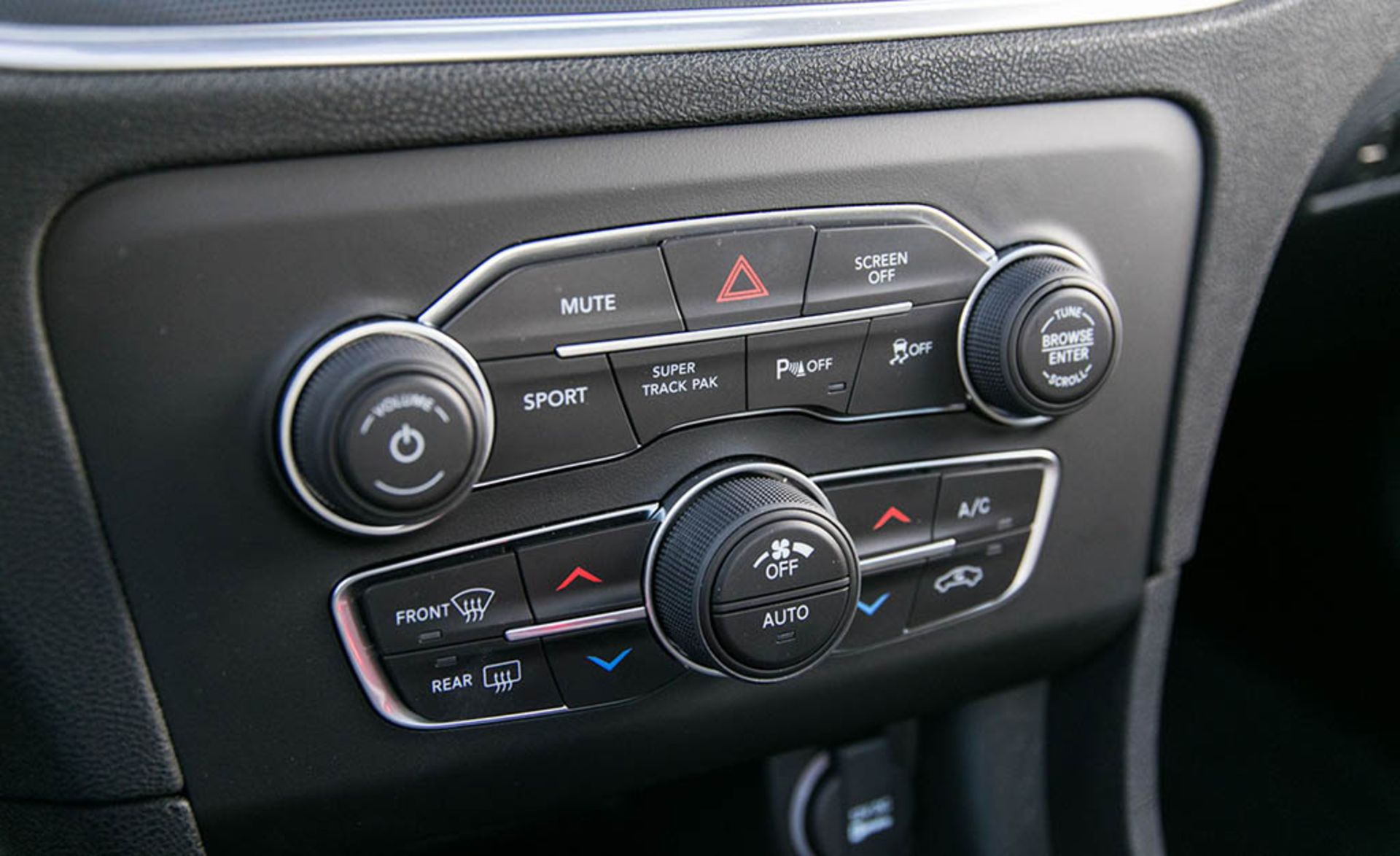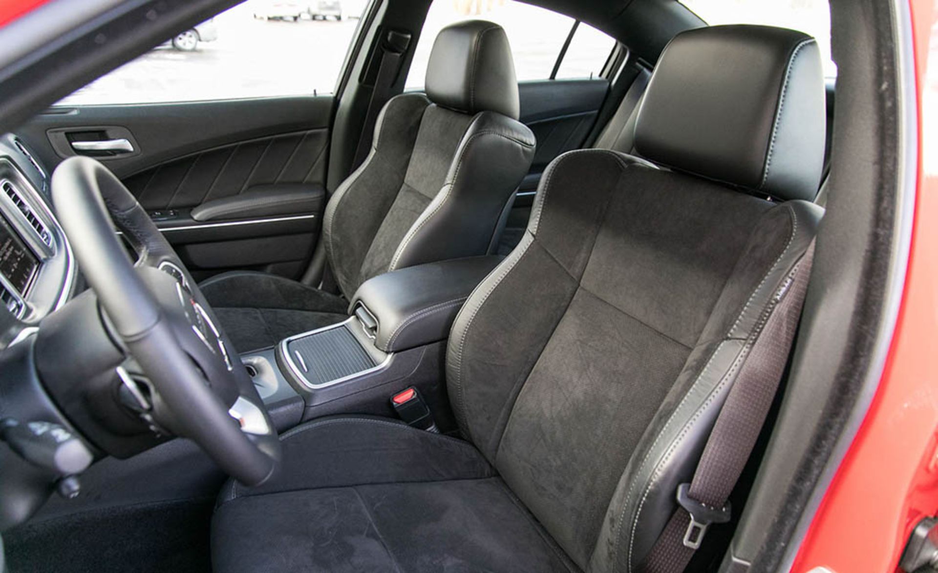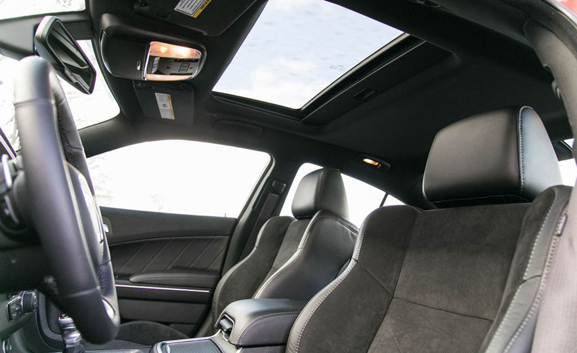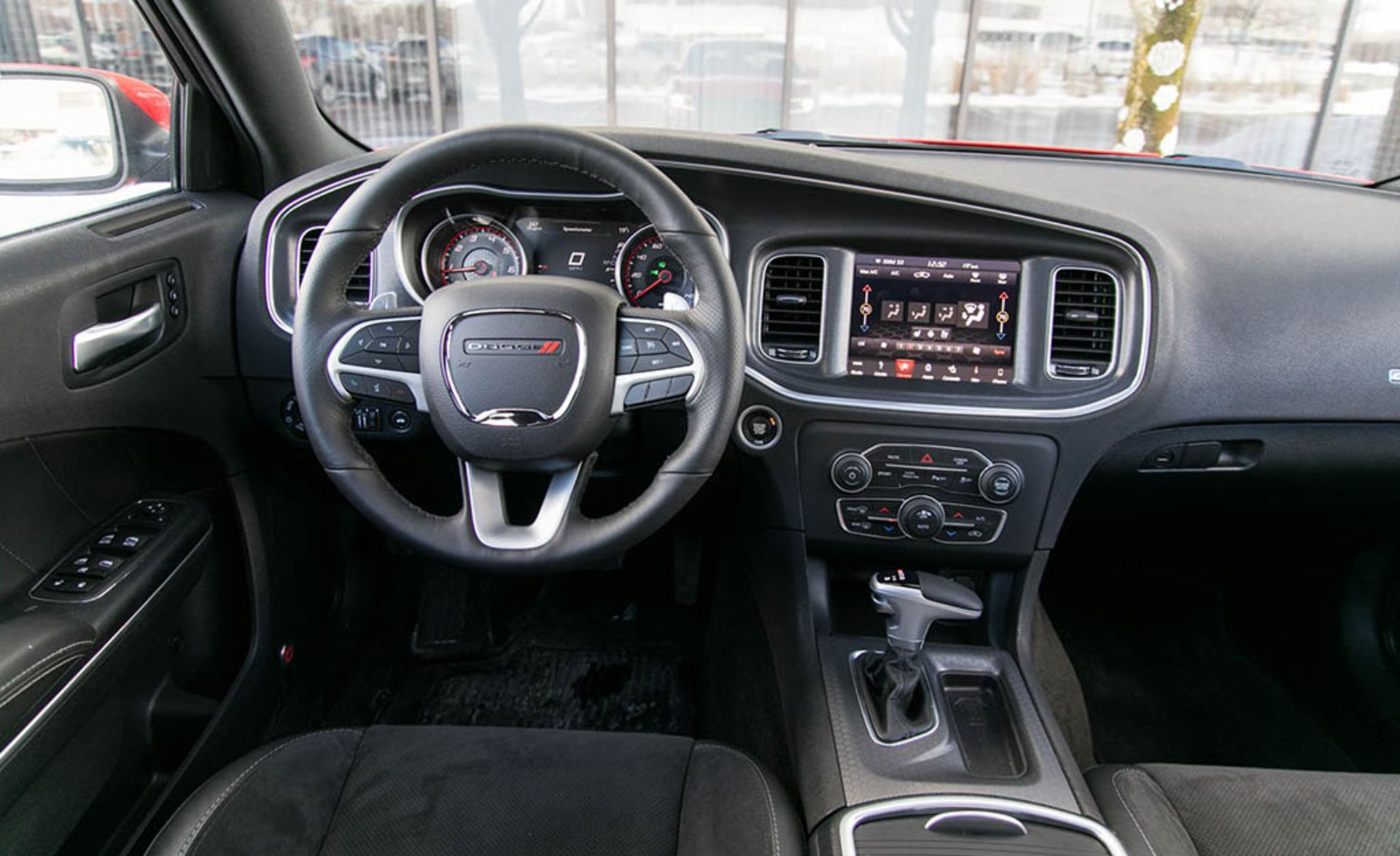 در پشت فرمان، چارجر به همان اندازه که شخصیت بزرگی دارد، بزرگ نیز احساس میشود. این خودرو معادل ۰.۹ اینچ از بیوک لاکراس و همچنین کیا استینگر بزرگتر است. ضمنا عرض و ارتفاع چارجر نیز نسبت به بسیاری از سدانها بیشتر است. صندوق عقب این خودرو یکی از مرتفعترینها در میان رقبا بوده و برآمدگی درب کاپوت آن نیز دید راننده را محدود میکند.