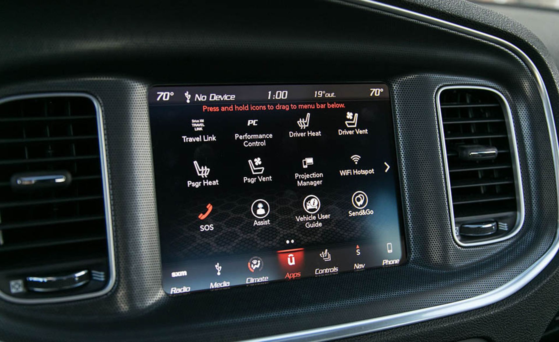 کابین چارجر به عنوان یک سدان چهاردرب فضای کافی برای نشیمن ۵ سرنشین را داراست. اما مشتریان جدید، امکاناتی فراتر از این را خواهان هستند. سیستم اطلاعات سرگرمی یوکانکت، همانند سایر تولیدات فیات کرایسلر در حکم ستاره درخشان فناوریهای کابین چارجر محسوب میشود. سامانه مسیریابی و ابزارهای ترافیکی تنها یکی از قابلیتهای گسترده موجود در صفحه نمایشگر ۸.۴ اینچی سیستم اطلاعات سرگرمی به شمار میرود. دقت صفحه نمایشگر لمسی در حد مطلوب بوده و وضوح آن نسبت به بسیاری از انواع مشابه در وضعیت بهتری قرار دارد. همچنین سیستم مذکور از هر دو قابلیت اپل کارپلی و اندرویداتو پشتیبانی میکند.