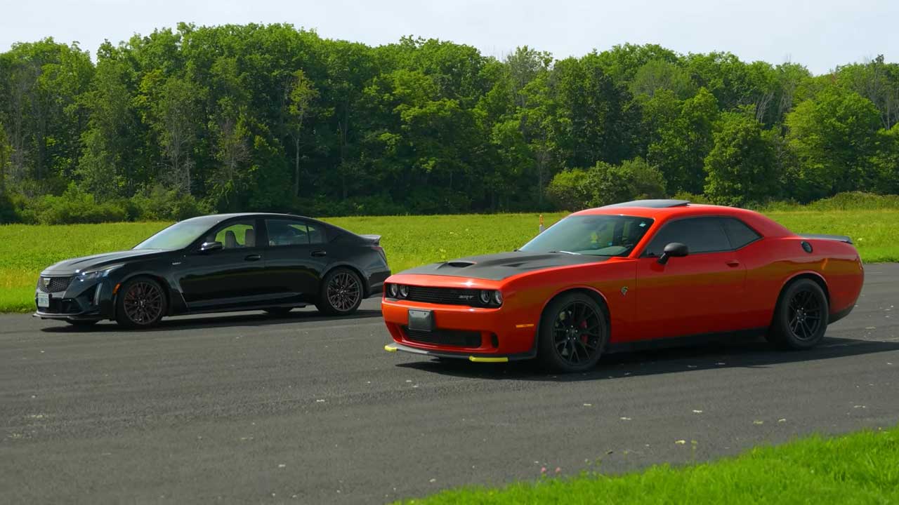 هرچند سدان عضلانی چارجر هلکت رقیب مناسب‌تری برای کادیلاک به‌حساب می‌آید اما سم کارلیجن نتوانسته یک نمونهٔ استوک آن را پیدا کند و به همین دلیل، برادر کوپۀ چارجر یعنی چلنجر هلکت را به میدان رقابت آورده است. این خودروها که هردو از پیشرانه‌های 6.2 لیتری V8 سوپرشارژ استفاده می‌کنند، روی کاغذ تقریباً در یک سطح هستند هرچند که چلنجر با 717 اسب بخار قدرت و 890 نیوتن متر گشتاور کمی قوی‌تر است. البته کوپهٔ دوج با وزن 2012 کیلوگرم، به میزان قابل‌توجهی سنگین‌تر است. از سوی دیگر، کادیلاک از 668 اسب بخار قدرت و 895 نیوتن متر گشتاور بهره می‌برد و تنها 1870 کیلوگرم وزن دارد.