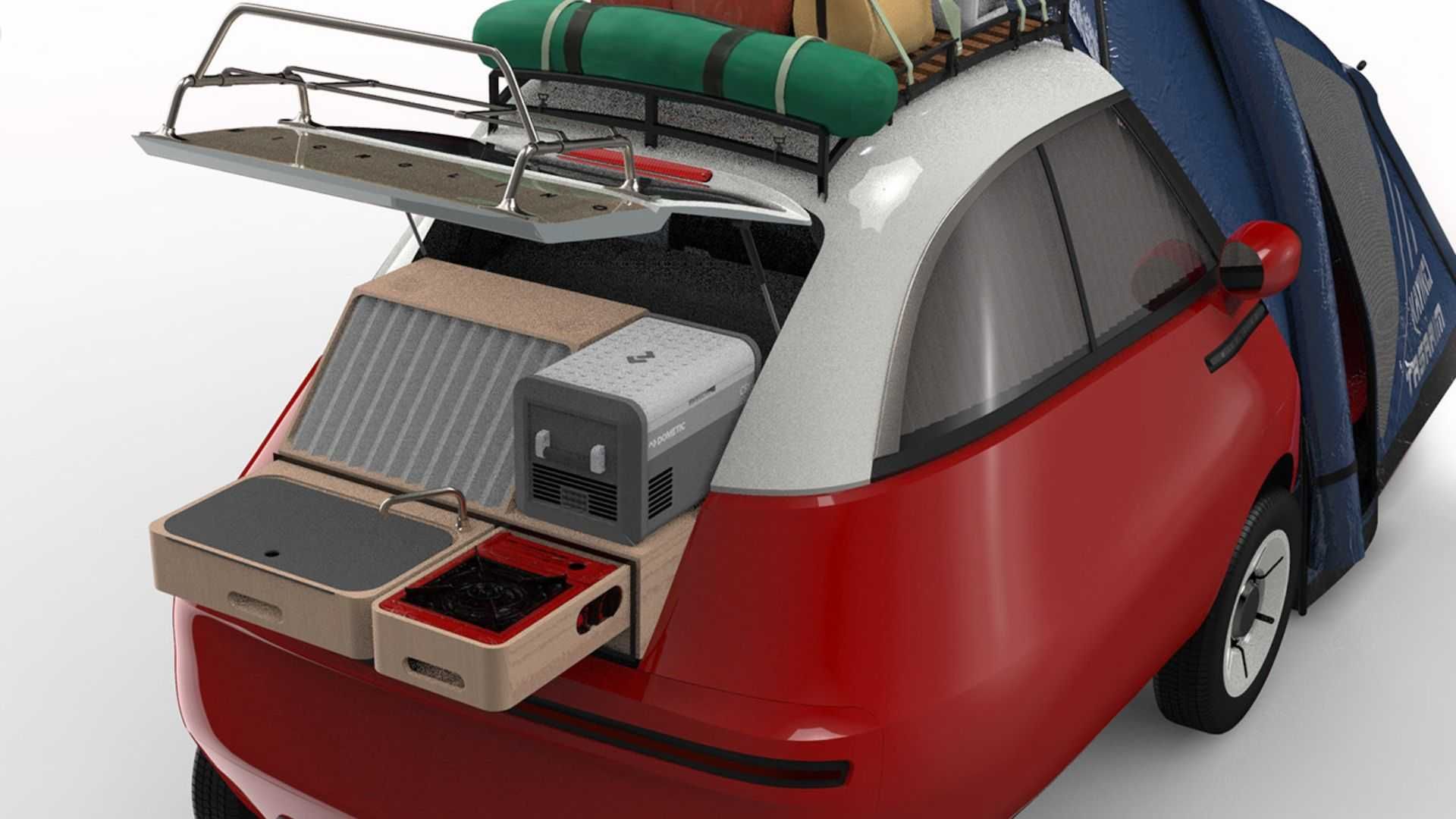 میکرولینو کمپر کانسپت در بطن ابعاد کوچک خود چادری باد کردنی را در بخش جلو و آشپزخانه پرتابل کوچکی را در بخش عقب جای داده است. این آشپزخانه در زمان استفاده باز میشود. با وجود ظرفیت حمل دو نفر، این خودرو ایدهای عالی برای افرادی است که میخواهند از شلوغی شهر دور باشند. حتی یک جفت صندلی تاشونده نیز در نظر گرفته شده که میتوان از آن در بیرون از خودرو استفاده کرد.