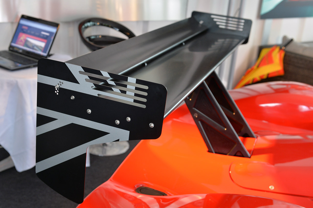 به لطف اسپویلر بزرگ جلو و همچنین باله عریض عقب که قابل تنظیم بوده و مطابق خودروهای GT3 مسابقه ای ساخته شده، نیروی عمودی وارد بر RXC حداکثر معادل 900 کیلوگرم است تا راننده این خودروی دو نفره بدون هیچگونه نگرانی، مانورهای ناگهانی را در هر سرعتی تجربه کند.