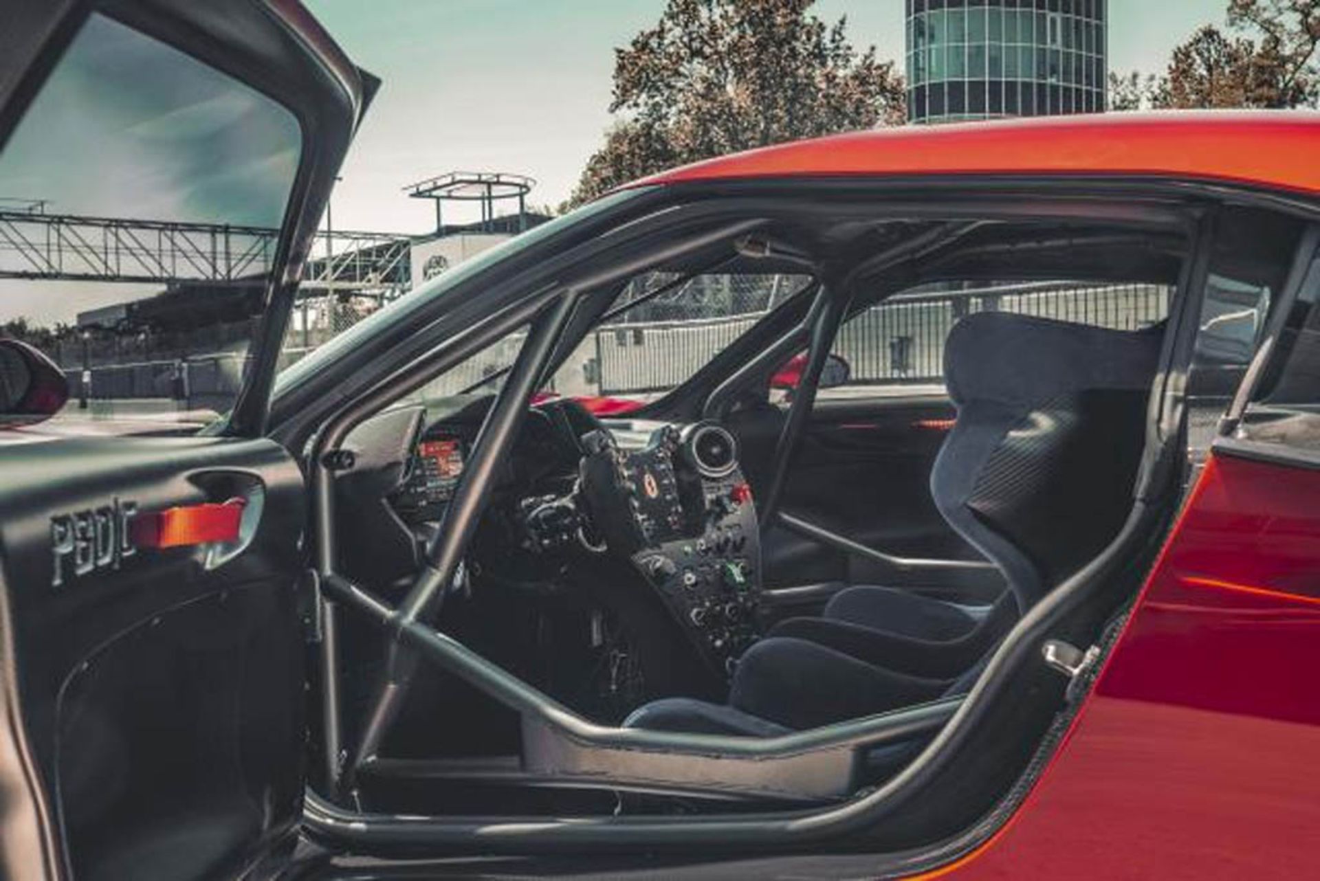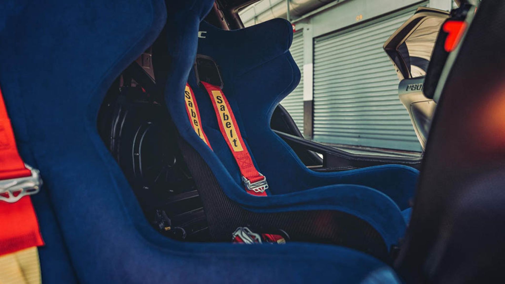 روشن کردن ماشین با فشار ادامه دار روی یک دکمه کوچیک انجام میشه که همین دکمه کوچک واسه ما سورپرایز کننده بود. دور درجای موتور هم کمی بالاتر بود که انتظارشو نداشتیم. یه صفحه دیجیتال پیش چشمای من وجود داشت که علائم حیاتی P80/C رو نشون می داد. کنسول مرکزی هم از فیبر کربن ساخته شده و هیچ ربطی به نسخه جاده ای نداره هرچند یه ورودی بزرگ باعث میشه هوای خنک وارد بشه. فرمون هم داستان دیگه ای داره و حتی نمیشه اونو یه فرمون کامل دونست. در واقع حس عجیبی داره و پر از دکمه های مختلفه. البته تو دست گرفتنش فوق العاده اس. نشون دهنده های حالت سوخت و نقشه موتور و دکمه هایی هم برای تنظیم کنترل کشش وجود دارن.