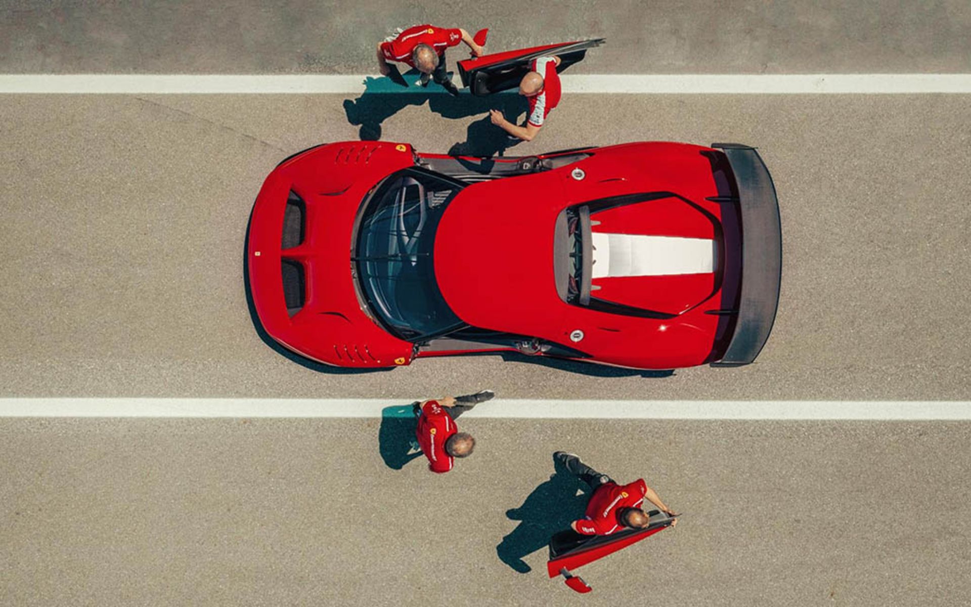 خب با محل موردنظر آشنا شدین. بهتره با خودرو هم آشنا بشین: فراری P80/C. چی؟! بال های جلوی فوق العاده، نمای عقب خشن، کاکپیتی پیش اومده و آئرودینامیکی کافی واسه شرمنده کردن یک موشک. این هیولا اما به اندازه کسی که سفارش ساختش رو داده مبهم و هیجان انگیز هست، یک فانتری واقعی، یک از یک، با قیمت 5 میلیون پوندی! P80/C زیر پوست خودش نسخه مسابقه ای 488 GT3 رو پنهون کرده و بنابراین با لاستیک های چسبنده پیرلی خودنمایی می کنه. رنگ روی بدنه با اسم روسو ورو شناخته میشه که قرمز آتشین و جذابی هستش. روی رنگ هم پوشش سرامیکی کشیده شده تا از آسیب در امون بمونه.