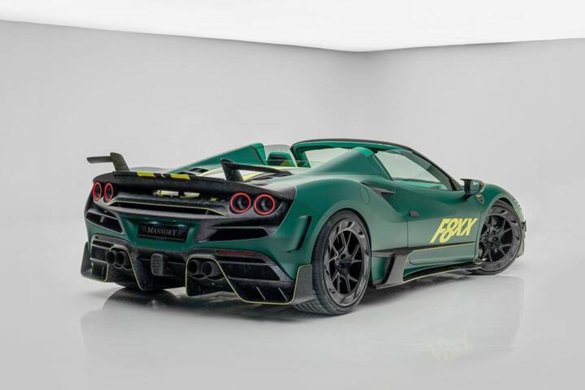 حدود یک سال پس از معرفی فراری F8 تریبوتو تیون شده توسط منصوری، این شرکت نسخه F8XX از مدل F8 اسپایدر را نیز معرفی کرده است. همانطور که انتظار میرفت این خودرو نیز به اندازه برادر کوپهاش وحشی به نظر میرسد. پکیج آئرودینامیکی بکار رفته در F8XX اسپایدر مشابه برادر کوپه بوده و بنابراین در بخش جلو اسپلیتر فیبر کربنی و تیغههای جدید اطراف جلوپنجره را میبینیم. همین تریم کربن فورج کاری شده در زیر چراغهای جلو نیز بکار رفته و یک جفت ورودی کوچک هم در طرفین سپر دیده میشوند.