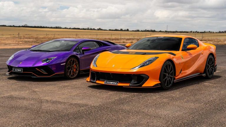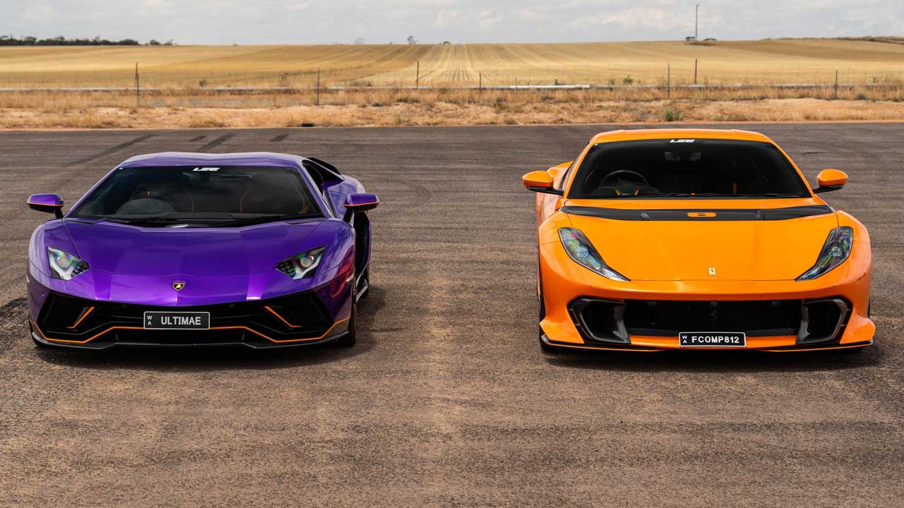 درگ فراری 812 کامپتیزیونه و لامبورگینی اونتادور اولتیمائه؛ خلوص V12!