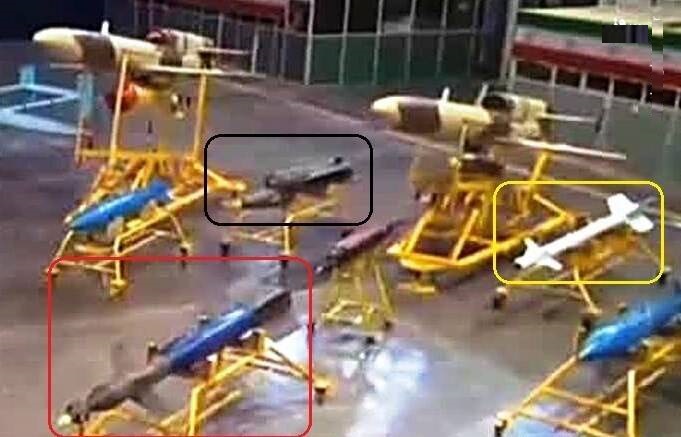ردیف جلو سمت چپ: بمبهای سقوط آزاد 900 کیلوگرمی / 450 کیلوگرمی و 220 کیلوگرمی با فیوز تأخیری