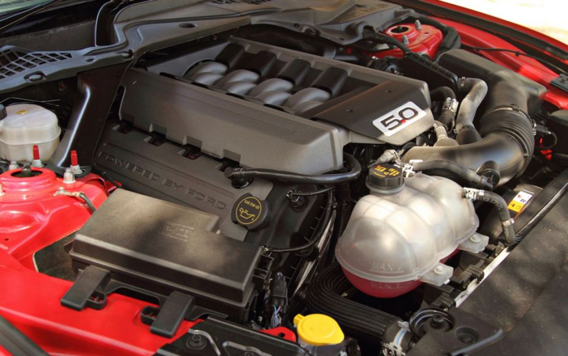 اما موستانگ هم بههیچعنوان خودروی ضعیفی نیست چراکه در سینهٔ خود یک قلب تنفس طبیعی 5 لیتری V8 دارد که به ساختاری تمام آلومینیومی، دو میل بادامک و زمانبندی متغیر باز و بسته شدن سوپاپها مجهز شده است. پاسخ دریچهٔ گاز بسیار سریع است و هرچند سیستم کنترل پایداری (ESC) وظیفهٔ خود را به بهترین نحو انجام میدهد، اما موستانگ هنوز هم وحشی بوده و خوی عصیان گر خود را حفظ کرده است.