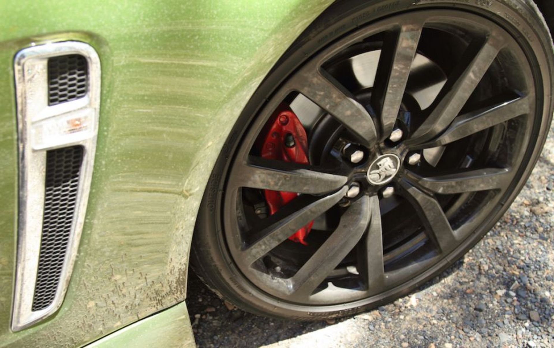 Ute SSV Redline مجهز به تعلیق منحصربهفرد هولدن شده که به ادعای سازنده بیشتر برای پیست طراحیشده است. با توجه به اینکه هر دو خودرو مجهز به رینگهای 19 اینچی هستند، سواری هر دو کمی خشک و خشن احساس میشود اما بااینوجود سواری هولدن به خشکی فورد نیست که این امر موجب ناراحتی رانندهٔ موستانگ هنگام حرکت در جادههای پردستانداز و ناهموار میشود. البته این تفاوت سواری شاید به خاطر لاستیکهای آنها نیز باشد. چراکه هولدن مجهز به لاستیکهای بریجستون Potenza RE050 است درحالیکه موستانگ از لاستیکهای پیرلی P-Zero استفاده میکند. هرچند که عرض لاستیکهای هردوی آنها 275 است. ترمزهای هر دو نیز توسط برمبو ساختهشده است با این تفاوت که دیسکهای ترمز عقب هولدن 360 میلیمتری است که 30 میلیمتر بزرگتر از موستانگ است و به همین دلیل در کل هنگام ترمز گیری احساس بهتری به راننده منتقل میکند.