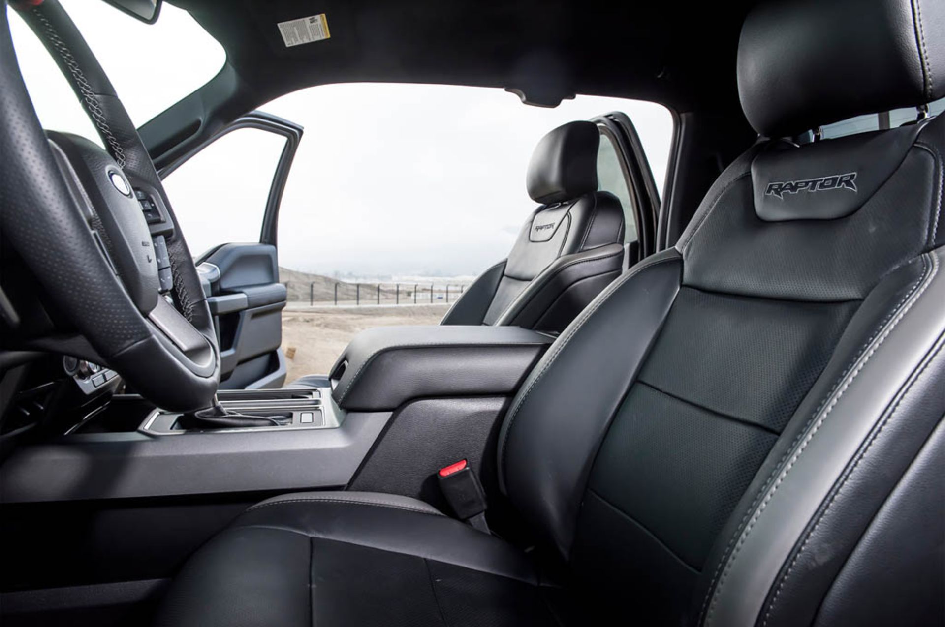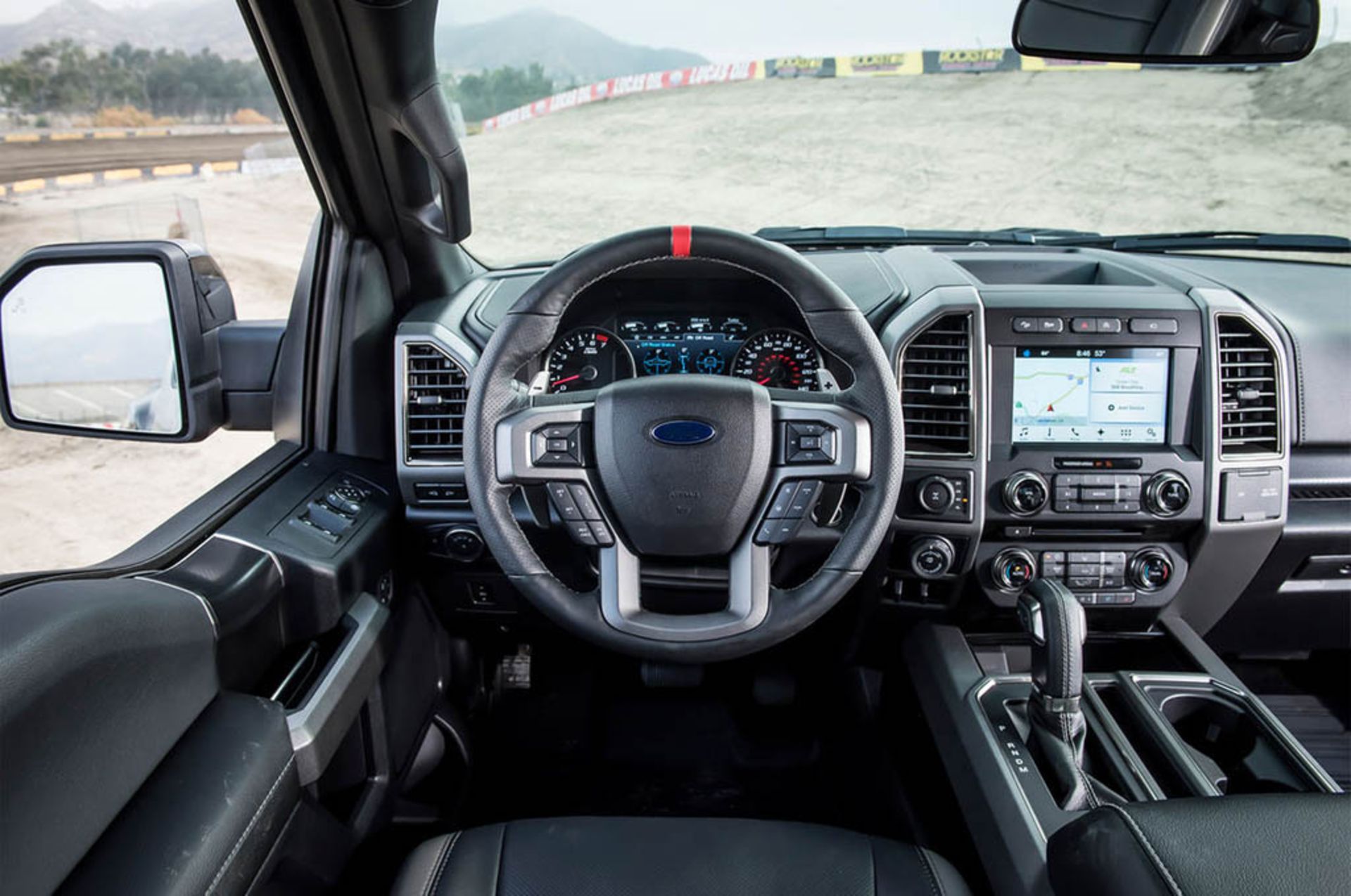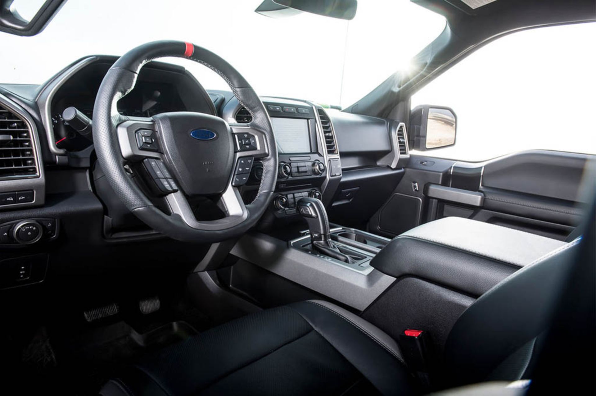 طرح کابین رپتور تقریباً مشابه نسخه استاندارد F150 است، با این تفاوت که مواد و متریال مرغوب‌تری در جای‌جای آن به کار رفته و در عین حال، به برخی از جزییات انحصاری ویژه نام خود نیز مجهز شده است. در میانه کنسول، یک پانل بسیار پهن نصب شده که در روی آن ادوات و ابزارهای همچون سامانه اطلاعات – سرگرمی، کنترلرهای تهویه مطبوع، سیستم صوتی و... جای گرفته‌اند. یک تونل میانی پهن نیز بین راننده و سرنشین جلو فاصله می‌اندازد که در سمت راست آن دو عدد جالیوانی بزرگ تعبیه شده است. فضای موجود در این کابین برای چهار سرنشین بزرگسال کفایت می‌کند و در مدل SUPERCREW به سبب طول بیشتر، این فضا افزایش هم می‌یابد. در یک جمع‌بندی کلی، کابین رپتور از بسیاری از خودروهای سواری مدرن نیز به‌مراتب لوکس‌تر و مجهزتر است و کاملاً در راستای رضایت خاطر طبع مشکل‌پسند مردمان آمریکای شمالی ساخته و پرداخته شده است.