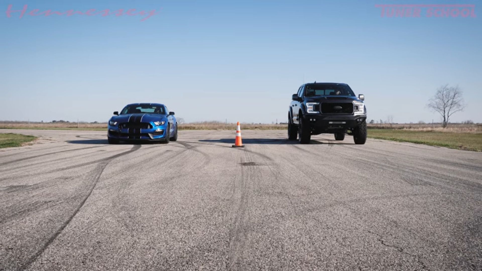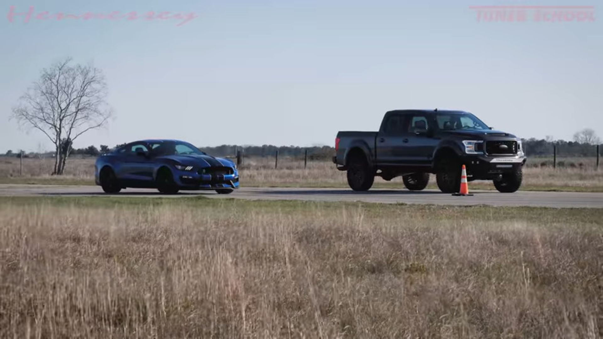 هنسی جدیدترین پروژه خود روی پیکاپ مشهور فورد F-150 را اواخر ماه فوریه معرفی کرد و سرانجام امروز میتوانیم این هیولا را در حال حرکت تماشا کنیم. البته این حرکت کمی عجیب است زیرا پیکاپ به اصطلاح ونوم 775 سوپرشارژر هنسی با شلبی GT350 استوک روبرو شده است.