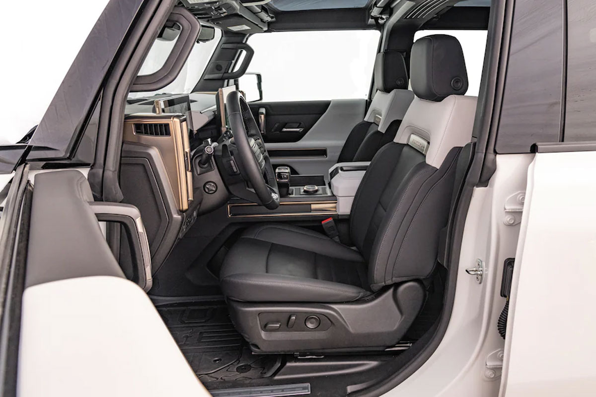 اما به خاطر پکیج باطری عظیم هامر، اوضاع در خانه بدتر میشود. اگر از شارژرهای 240 ولتی و مدار 60 آمپری استفاده شود، در خانه باطریها پس از 16.5 ساعت از 20 تا 100 درصد شارژ میشوند اما با مدار 40 آمپری، این مقدار شارژ یک شبانهروز کامل طول خواهد کشید. البته بعید است که بسیاری از خریداران این خودرو هرروز پیش از آنکه به خانه بازگردند از تمام برد 530 کیلومتری آن استفاده کنند. البته خیلیها از هامر به خاطر برد زیر 600 کیلومتر با چنین پکیج باطری عظیمی انتقاد میکنند زیرا ریویان R1T با یک پکیج باطری 135 کیلووات ساعتی تا 500 کیلومتر را پوشش میدهد و F150 لایتنینگ هم با باطریهای 131 کیلووات ساعتی میتواند تا 515 کیلومتر را طی کند. بااینحال باید توجه داشت که این پکیج باطری 1300 کیلوگرمی در هامر باید وزنی 4 تنی را جابجا کند و این کار قطعاً به انرژی زیادی نیاز دارد.