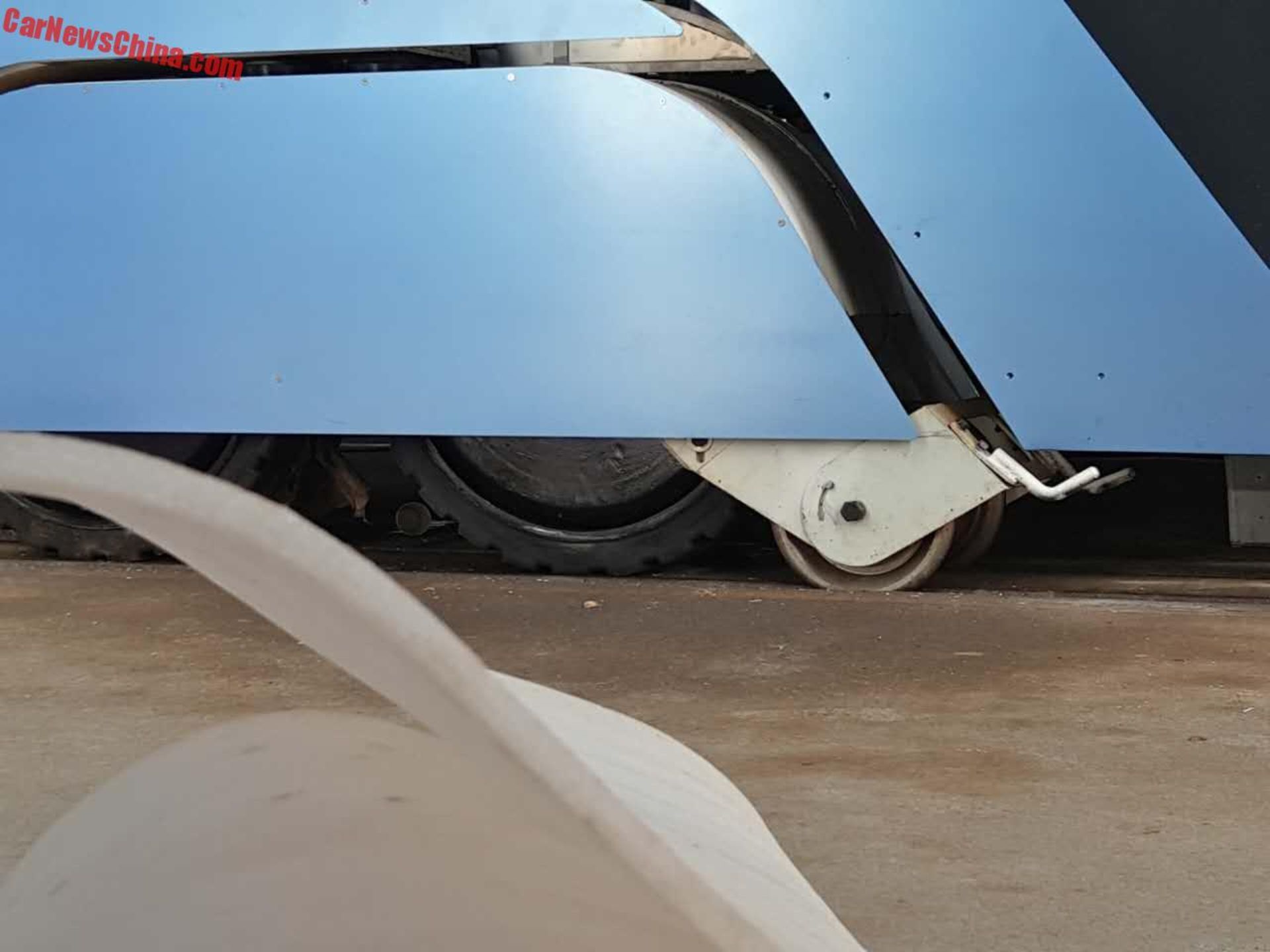 اما مشکلات این اتوبوس به همین‌جا ختم نمی‌شود چراکه درحالی‌که ادعا شده بود TEB-1 همچون مترو یا قطار روی ریل حرکت می‌کند، حال مشخص‌شده که این اتوبوس درواقع روی ریل حرکت نکرده و همانند اتوبوس‌های معمولی دارای چرخ‌های لاستیکی است. اگرچه چرخ‌های کوچک فلزی هم در طرفین اتوبوس نصب‌شده اما هیچ‌یک از این چرخ‌ها روی ریل نبوده و در اصل روی یک شیار حرکت می‌کنند. این امر از آنجایی مشخص شد که در مسیر آزمون هیچ ریلی دیده نشده است؛ بنابراین چرخ‌های لاستیکی در قسمت میانی اتوبوس و چرخ‌های فلزی در جلو و عقب نصب‌شده و صرفاً روی یک شیار حرکت می‌کنند درحالی‌که از هیچ فلزی جهت ساخت مسیر حرکت اتوبوس استفاده‌نشده است.  به همین دلیل ممکن است اتوبوس هنگام حرکت از مسیر خود خارج‌شده و به خودروهایی زیرین برخورد کند.