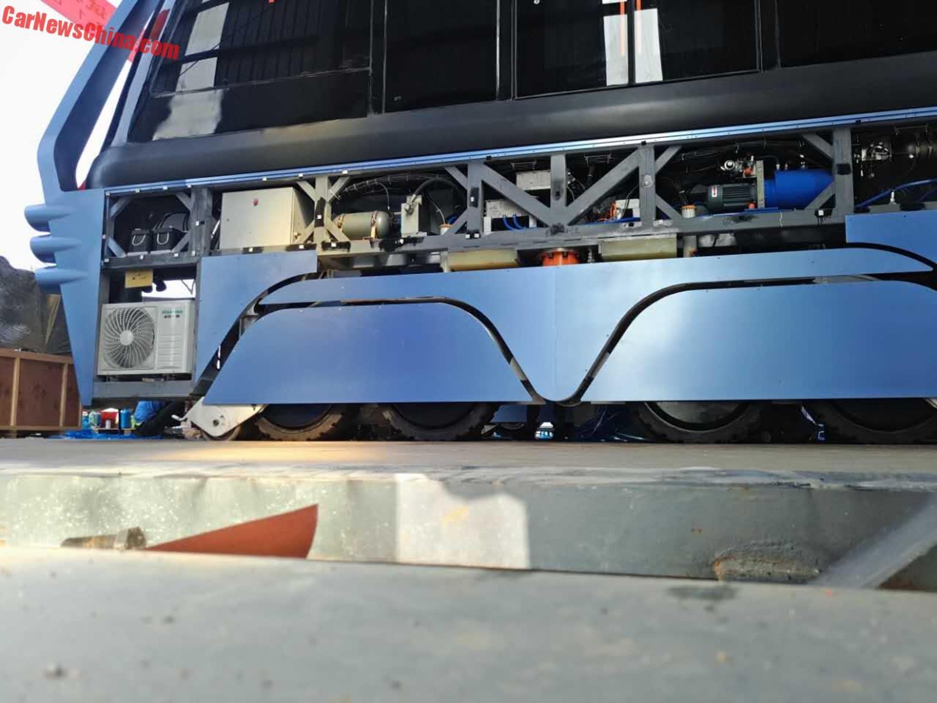 این اتوبوس که اصطلاحاً «Straddling Bus» نامیده می‌شود، 60 متر طول، 7.8 متر عرض و 4.8 متر ارتفاع دارد و بر روی ریل‌هایی که در دو طرف خیابان نصب‌شده حرکت می‌کند. فضای خالی زیرین این اتوبوس از سطح زمین 2.1 متر ارتفاع دارد؛ بنابراین می‌تواند به‌راحتی از روی خودروهای در حال حرکت در خیابان‌ها رد شود. در قسمت پایینی آن پنجره‌هایی تعبیه‌شده تا موجب وحشت رانندگان خودروهای سواری ناشی از قرار گرفتن در فضایی کاملاً بسته و تاریک نشود. این در حالی است که فضای داخلی آن نیز بسیار بزرگ بوده و فضای کافی جهت حمل تا 300 نفر مسافر را دارد درحالی‌که مانند مترو کاملاً روشن است.