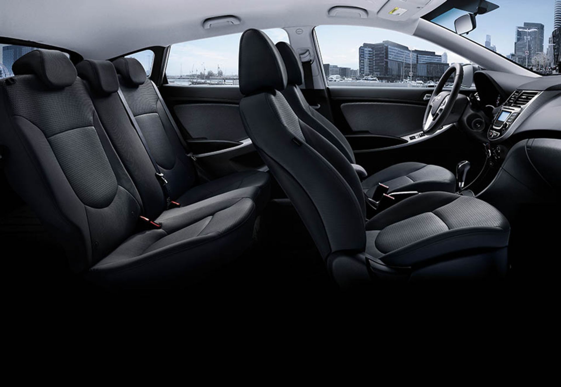 جهش‌ها و خیزش‌هایی که در نمای بیرونی این خودرو رخ داده، به درون آن نیز راه یافته و اثراتش را بر کنسول میانی مرتب و خالی از آشفتگی این خودرو، باقی نهاده است. برای جبران کمبود استراحتگاه میانی دست در این خودرو، هیوندای به‌طور جزئی دسته صندلی سمت راننده را به سمت پایین کشیده است. با این وجود، به‌منظور پایین نگه داشتن هزینه‌ها، حدود 80 درصد از اجزای داخل کابین با پلاستیک سخت ساخته شده، که این امر شامل حال آفتاب‌گیرهای جلو نیز می‌گردد! با وجود اینکه جای پا و فضای سر در نشیمنگاه‌های عقب کافی هستند ولی فضای متعلق به نفر سوم در آن چندان کافی نبوده و کمی تنگ می‌باشد.