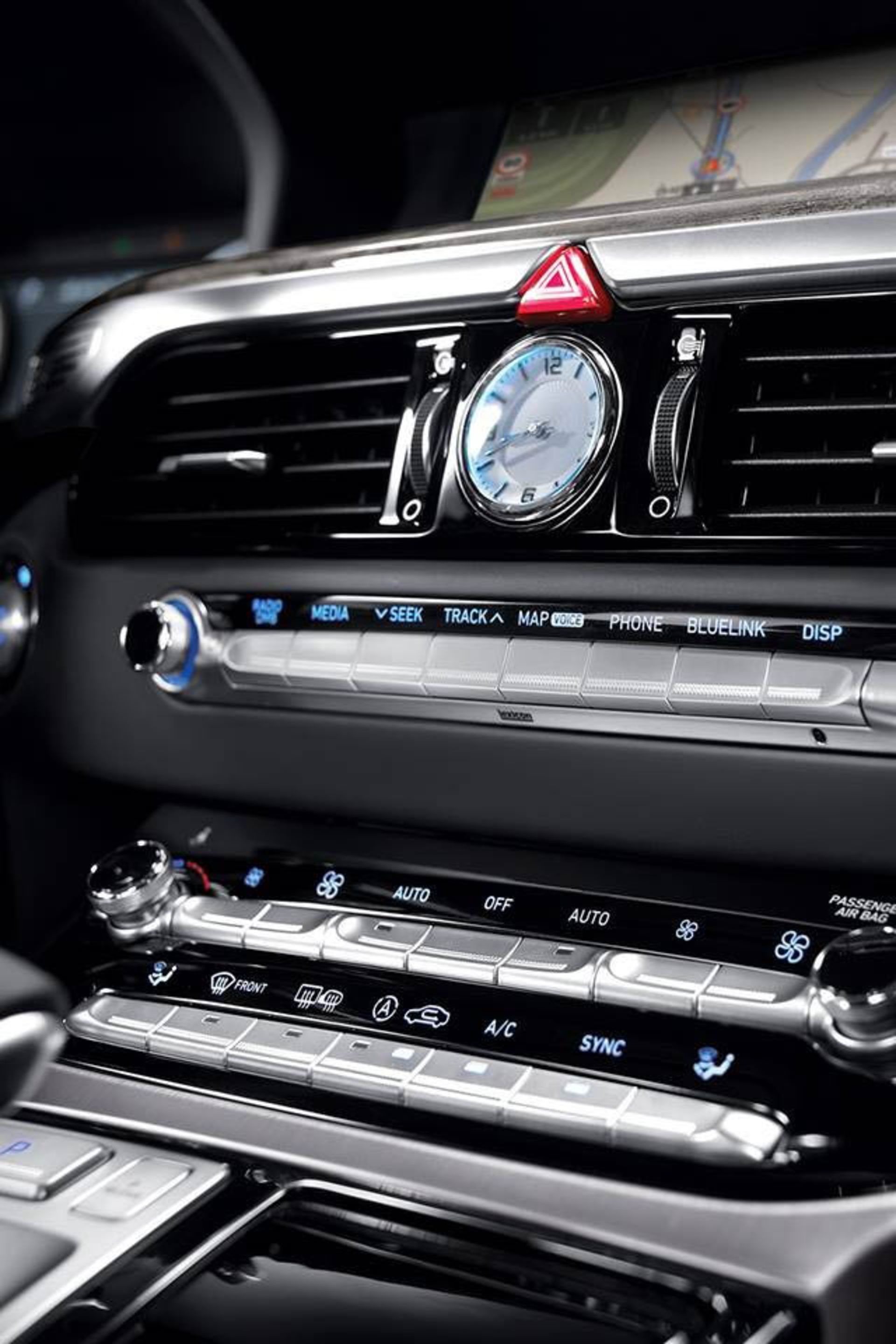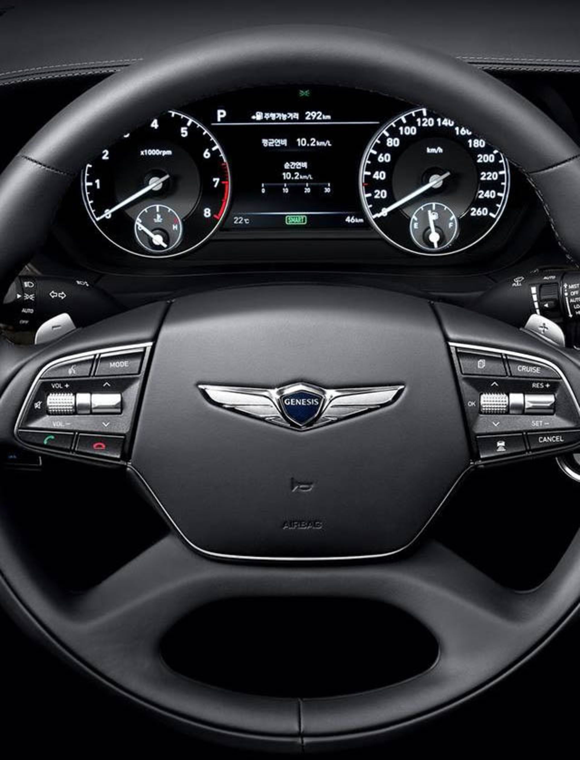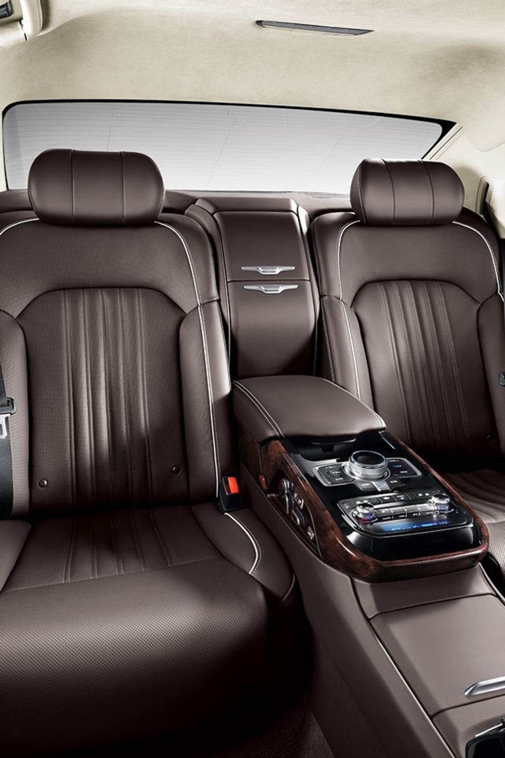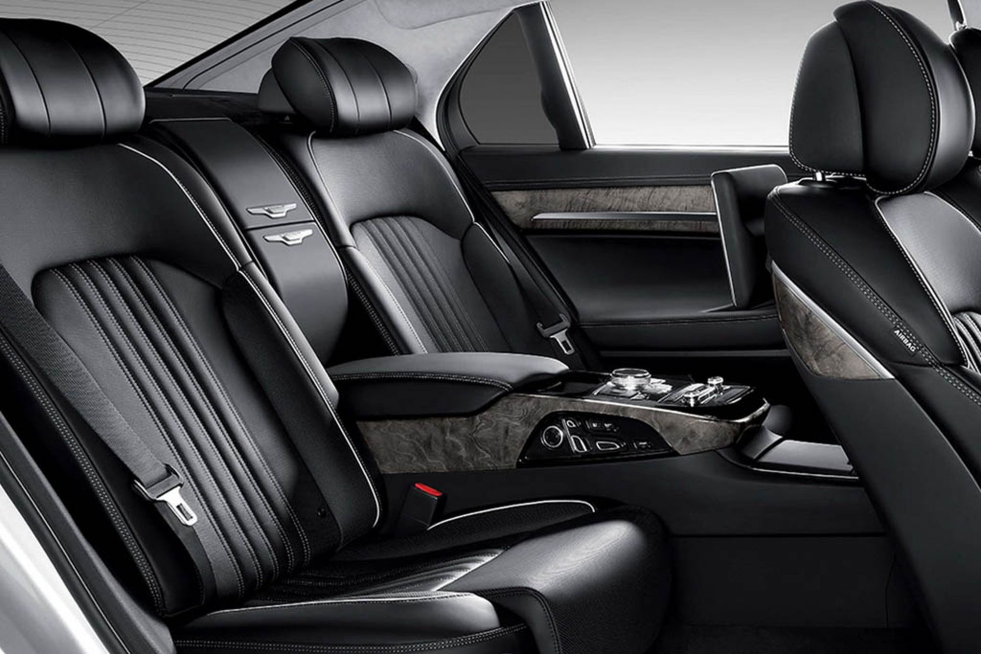 در داخل کابین، صندلی راننده این قابلیت را دارد که به صورت الکترونیکی در ۲۲ جهت مختلف برای پیدا کردن بهترین موقعیت نشستن راننده تنظیم شود. همچنین یک سیستم صوتی فراگیر تجمّلی Lexicon وجود دارد که با سیستم اطلاعات و سرگرمی با نمایشگر ۱۲/۳ اینچی همراه است. از دیگر تجهیزات داخل G90 میتوان به یک سیستم کنترل هوای سهگانه، شارژ بیسیم، صندلیهای VIP با قابلیتتنظیم در ۱۴ جهت، طراحی چرمی شبیه به انیلین و تریم چوب واقعی اشاره کرد.