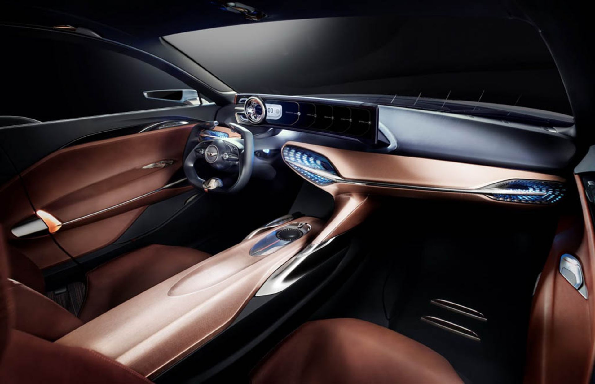 شکی در فوق العاده بودن بدنه خارجی فرزند تازه جنسیس نیست اما ستاره نمایشگاه نیویورک فضای داخلی مربوط به آینده آن بود. داشبورد و انحناهای کلی آن، فیلم I Robot  را به خاطر بینندگان آن می‌آورد و نمایشگر خمیده لمسی ۲۱ اینچی LG نیز داشبورد دیجیتال و کنسول میانی را در نمایشگری با کیفیت 4K  گرد هم آورده است. با این وجود، شرکت مادر  کانسپت نیویورک را از داشتن پانل ابزار آنالوگ محروم نکرده است.