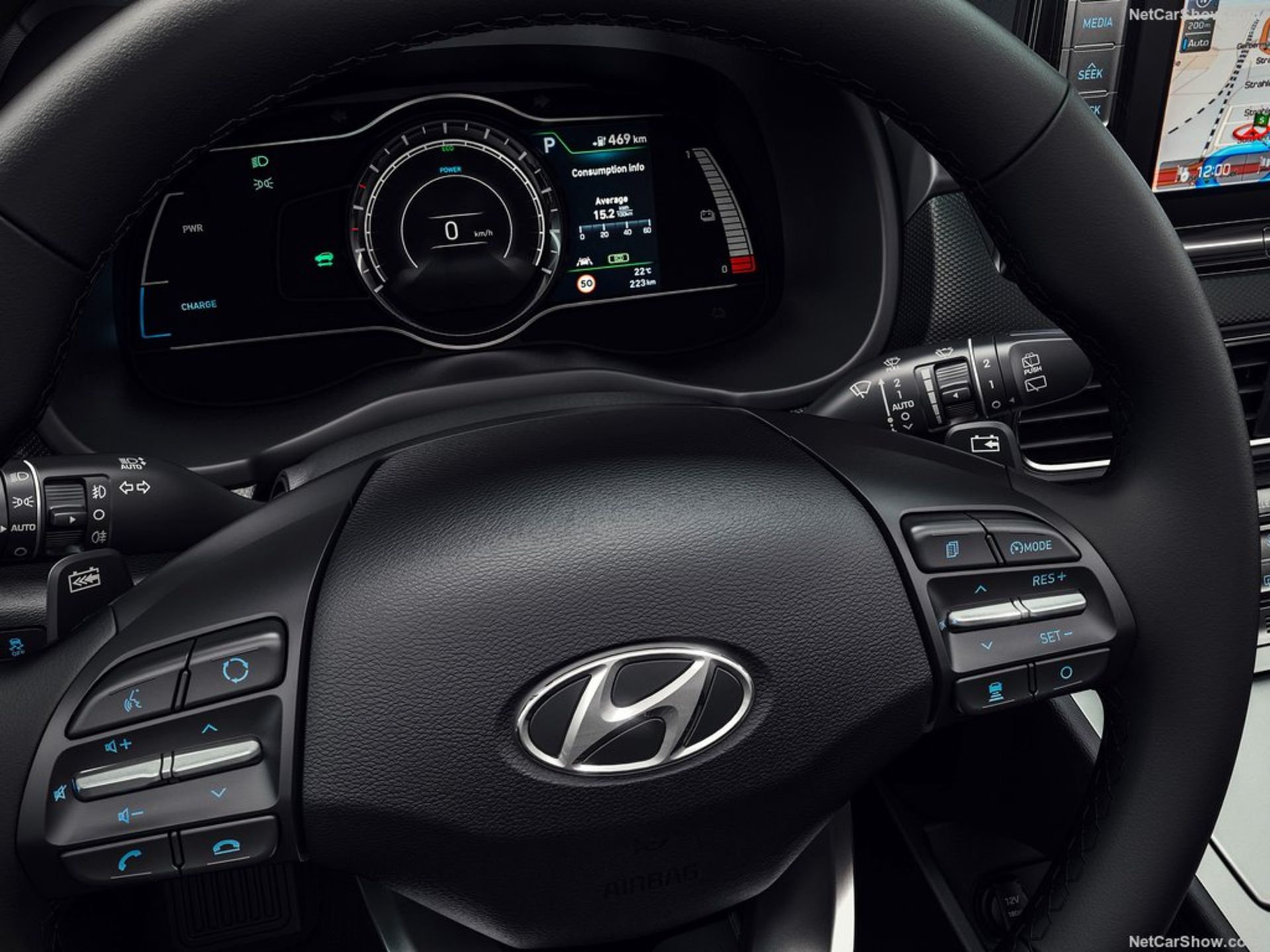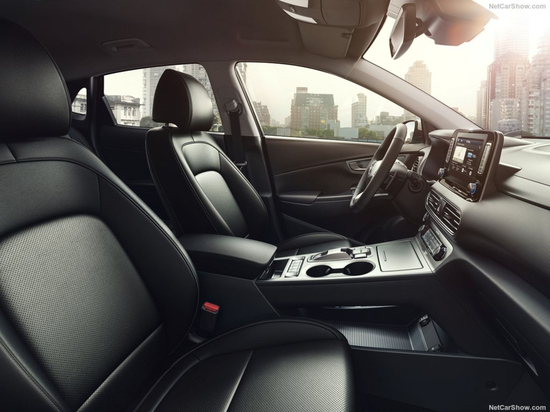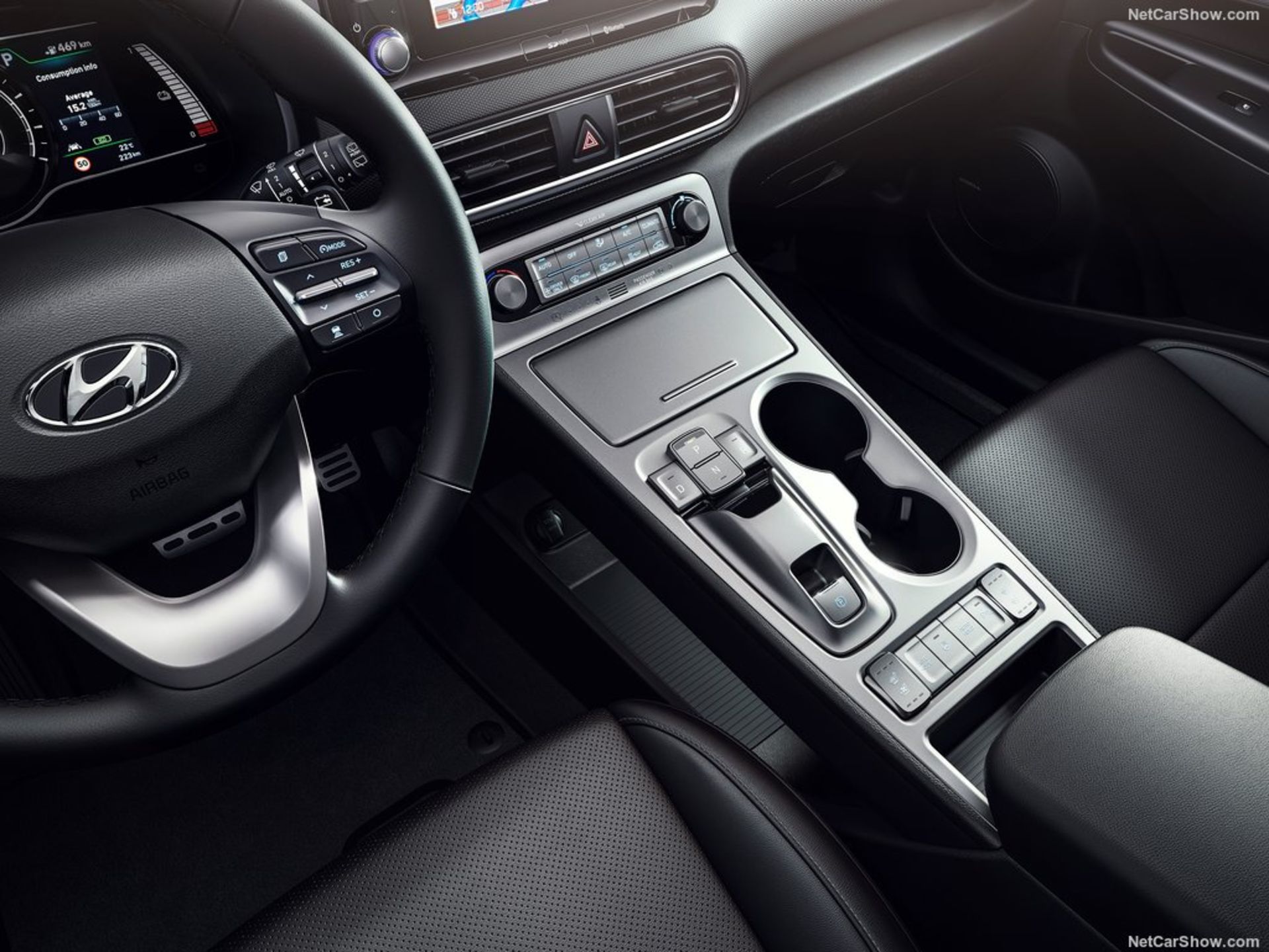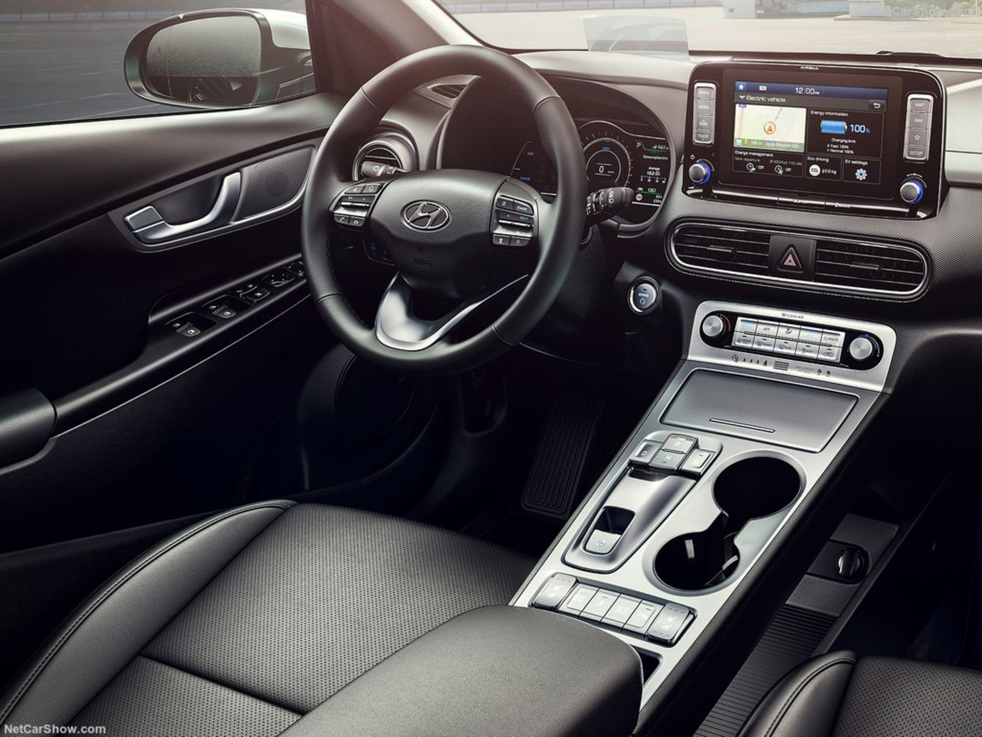 در داخل خودرو، یک صفحه آمپر تمام دیجیتال از طریق یک نمایشگر هفت اینچی وضوحبالا ارائه شده درحالیکه سیستم اطلاعاتی-سرگرمی خودرو نیز طیف گستردهای از ویژگیهای اتصالی همچون کارپلی اپل و اندروید اتو گوگل را ارائه میکند. برای کنا الکتریکی همچنین یک کنسول مرکزی ویژه طراحی شده که دکمههای کنترل خودرو روی آن قرار گرفته و در زیر آن نیز فضایی برای قرار دادن اشیاء در نظر گرفته شده است.