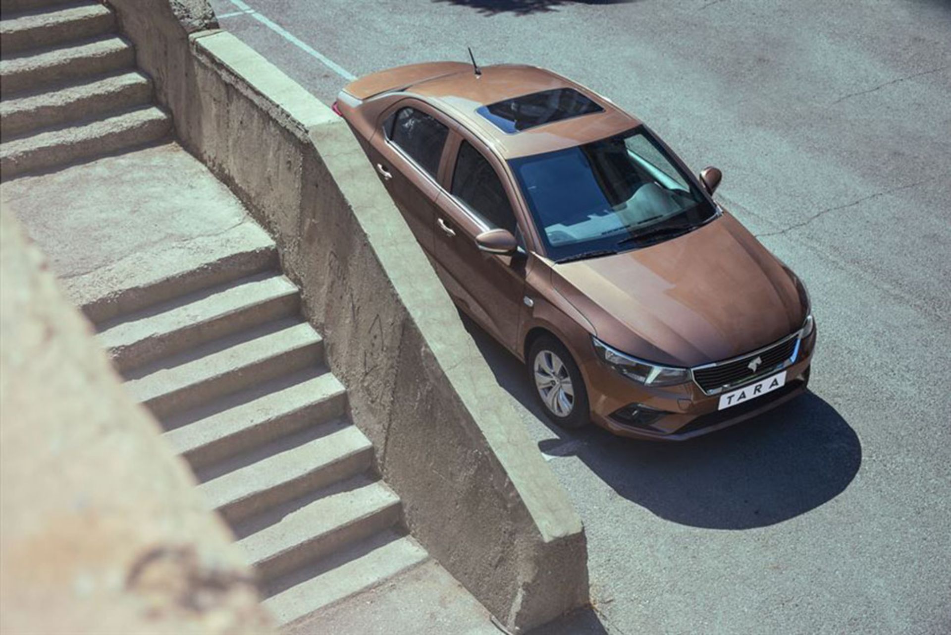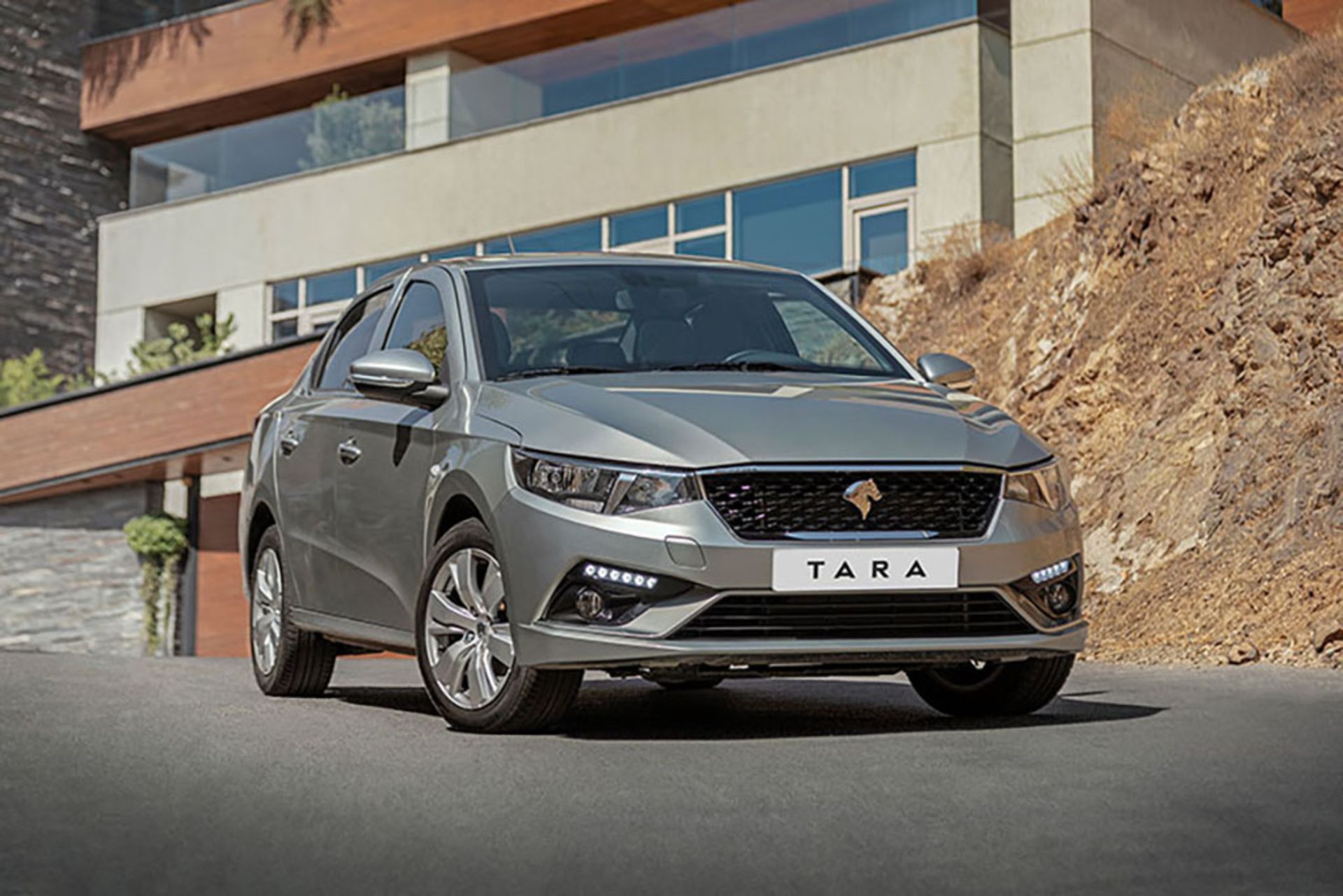 بگذارید از جلو شروع کنیم. تارا نیز مانند دیگر محصولات ایرانخودرو از خطوطی واضح استفاده میکند و تقریبا خبری از فرمهای آئرودینامیک و نرم نیست. چراغهای هالوژنی جلو فرمپردازی جدیدی دارند اما میتوان آنها را ترکیبی از چراغهای پژو 301 و دنا دانست. جلوپنجره تارا درحقیقت نسخه سادهتری از جلوپنجره پژو 301 است. در زیر چراغها نیز شاهد حضور چراغ روزتاب و مهشکنها هستیم.