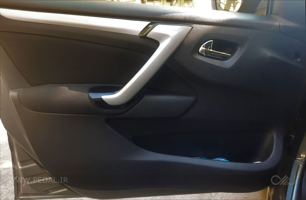اما طراحی غربیلک فرمان، سردنده و موقعیت دکمه استارت در تارا متفاوت و جذاب به نظر میرسد. فضا برای قرار دادن اشیا در کابین به اندازه کافی مهیا است اما ایکاش کمی بیشتر بود. کیفیت متریال استفاده شده در کابین ایدهآل نیست اما ناامیدکننده هم نیست. فضای کابین برای یک خانواده چهار نفره به نسبت مناسب است و فضای صندوق نیز برای سفرهای طولانی مدت راضیکننده است.