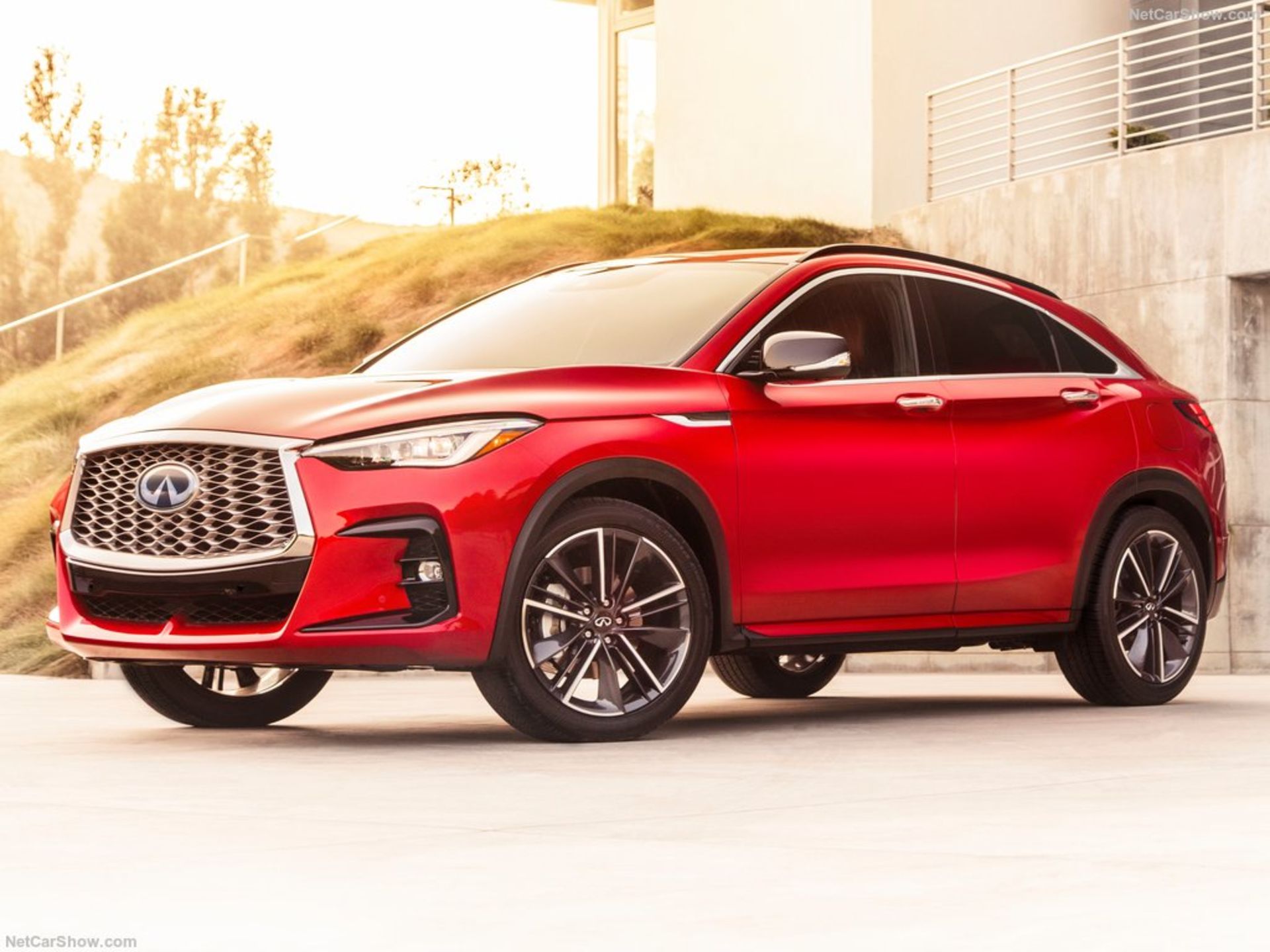 اینفینیتی نزدیک به دو دهه پیش وقتی مدل FX را معرفی کرد، به دنیای کراساوورهای کوپه وارد شد و حالا با مدل جدید QX55 این میراث را ادامه داده است. هرچند این خودرو بر اساس مدل QX50 ساخته شده اما از طراحی اسپرتتری بهره میبرد. چشمگیرترین ویژگی در قسمت جلویی QX55 یک جلوپنجرهٔ برجسته و بزرگ است که با چراغهای باریک LED و ورودیهای هوای اسپرت با تریم مشکی براق احاطه شده است.