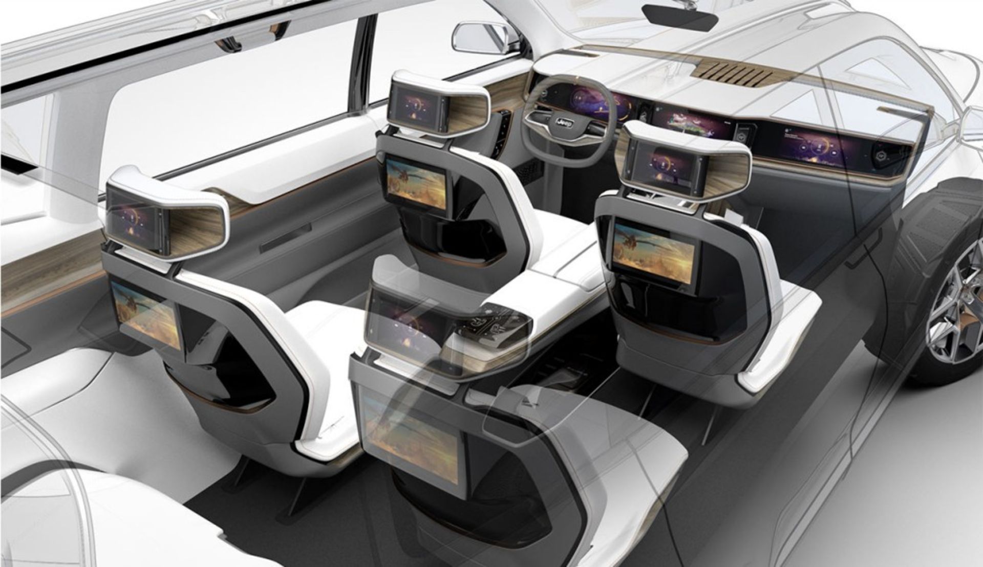 این در حالی است که سرنشینان ردیف دوم و سوم نیز از دو صفحهنمایش بهرهمند هستند که یکی در پشتسریها و دیگری در تکیهگاه صندلیهای جلویی نصب شده است. در کابین این کانسپت همچنین یک کنسول مرکزی شناور، تریم چوبی و پشتی صندلیها به رنگ مشکی براق به چشم میخورد. انتظار میرود کانسپت Yuntu بر اساس گرند چروکی ساخته شده باشد.