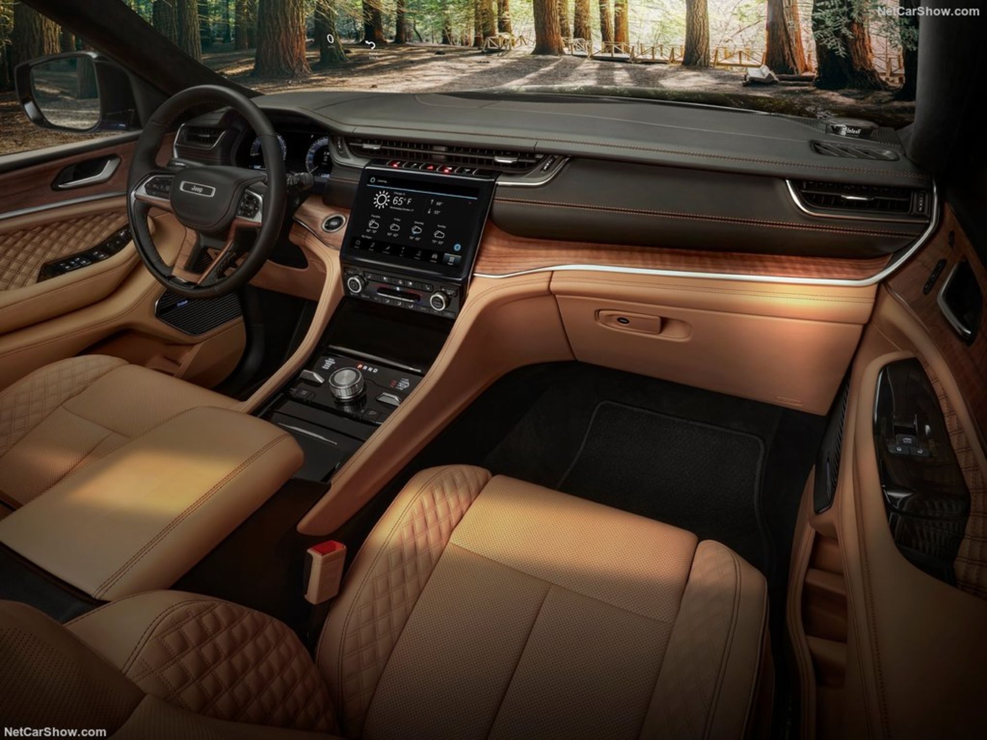 گرند چروکی L علاوه بر برخورداری از کابین بزرگ‌تر با صندلی‌های بیشتر، لوکس‌تر و پیشرفته‌تر هم شده که صفحه آمپر دیجیتالی 10.3 اینچی و نمایشگر مرکزی در دو اندازهٔ 8.4 و 10.1 اینچی از ویژگی‌های آن هستند. تیپ سامیت رزرو نیز از ویژگی‌های لوکسی مثل روکش چوبی گردو، صندلی‌های چرمی پالرمو و... سود می‌برد. این اس‌یووی آمریکایی از لحاظ ایمنی هم چیزی کم ندارد زیرا به‌صورت استاندارد به هشدار برخورد جلو، کروز کنترل تطبیقی با قابلیت توقف و حرکت دوباره، دستیار حفظ حرکت میان خطوط و... مجهز است. برای گرند چروکی L حتی سیستم خودران سطح دو هم قابل سفارش است.